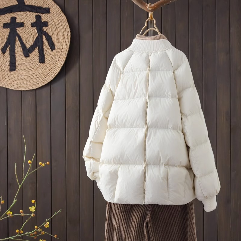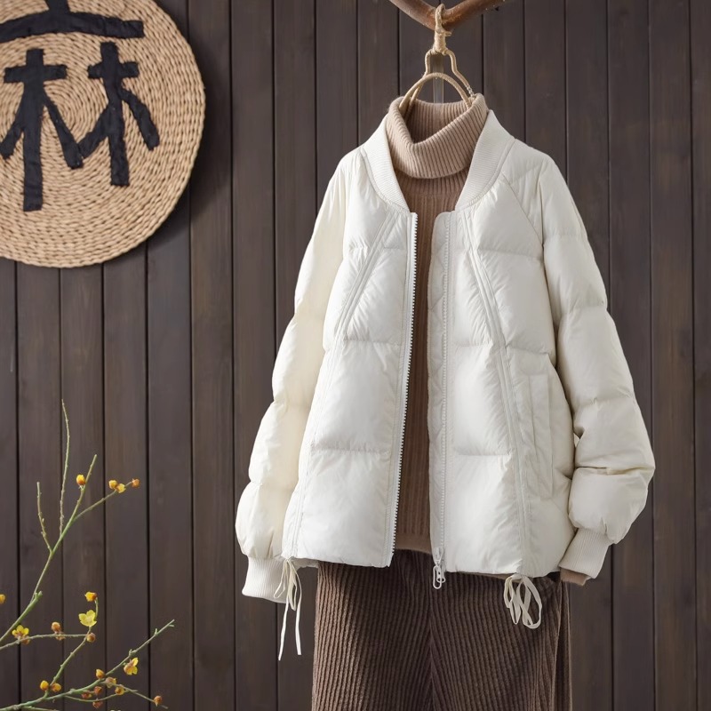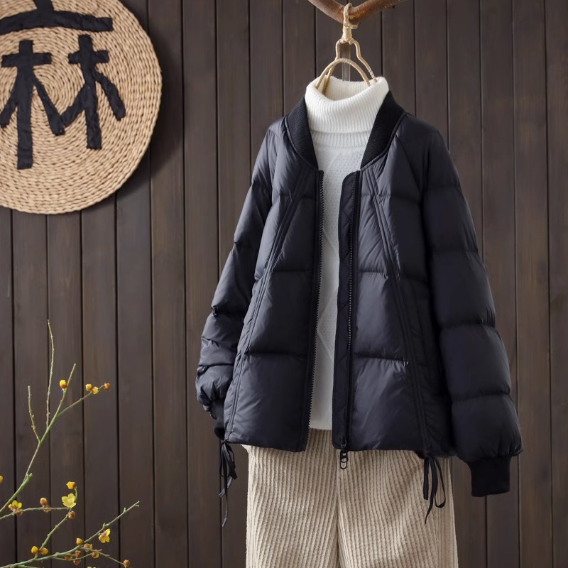 | nameOriginal | Baseball collar down jacket women's short 2023 New loose drawstring design 90 white duck down small thickened coat |