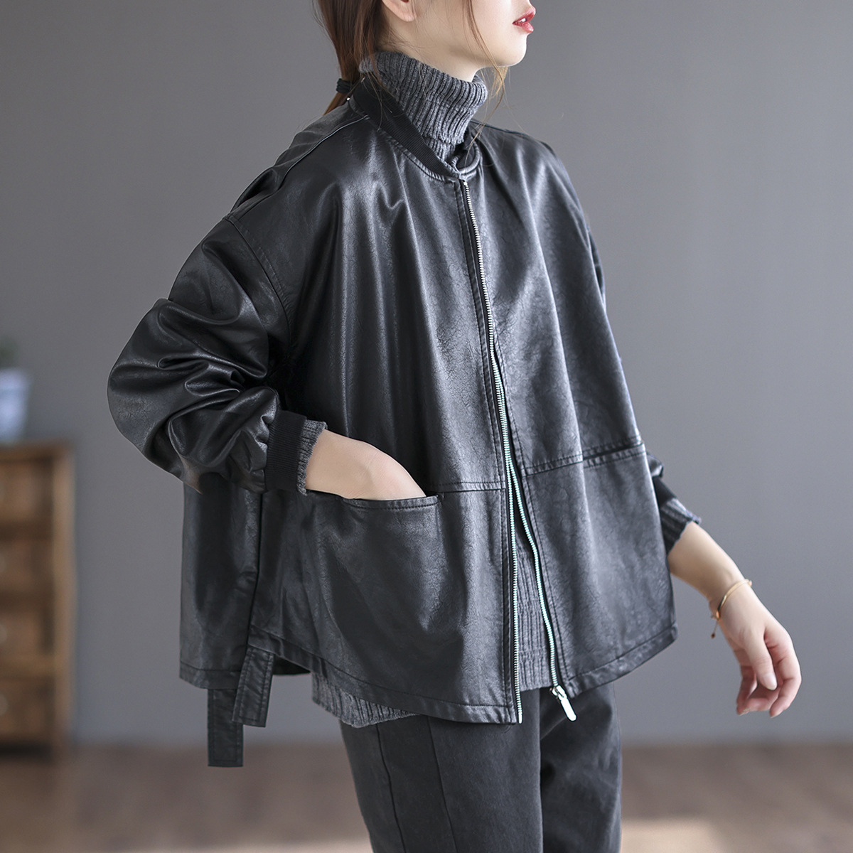 | nameOriginal | Baseball Collar PU Leather Jacket Spring and Autumn New Large Size Loose Zipper Long Sleeve Casual All-match Jacket 80335 |