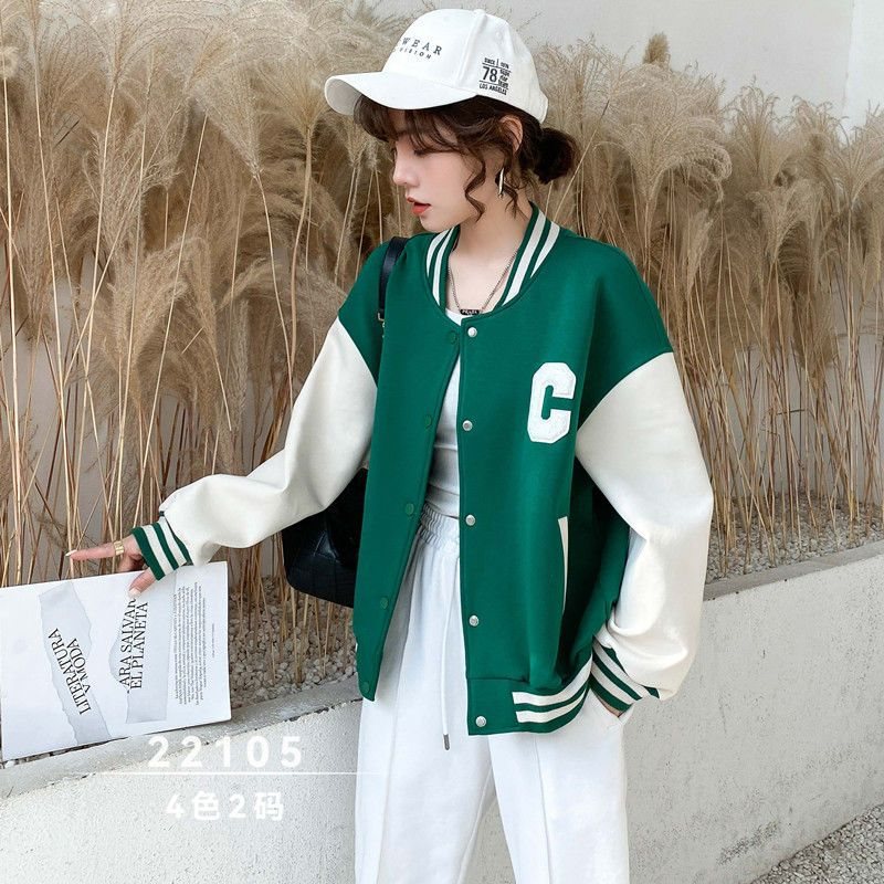 | nameOriginal | Baseball Suit Women's 2022 Spring New Loose Casual Letter Color-block Jacket Round Neck Cardigan Short Sweater Jacket |
