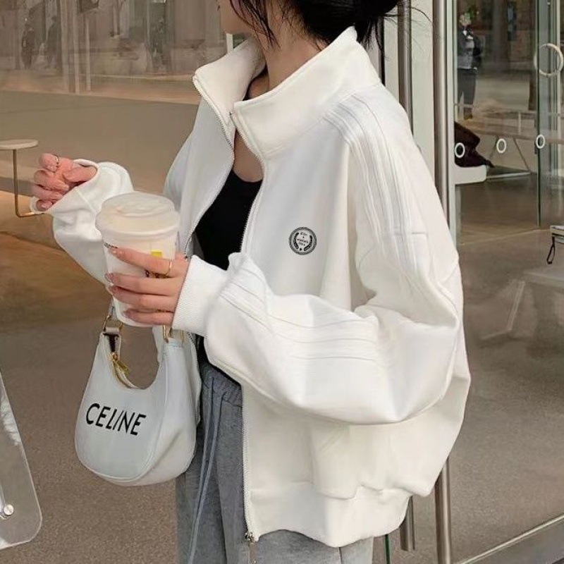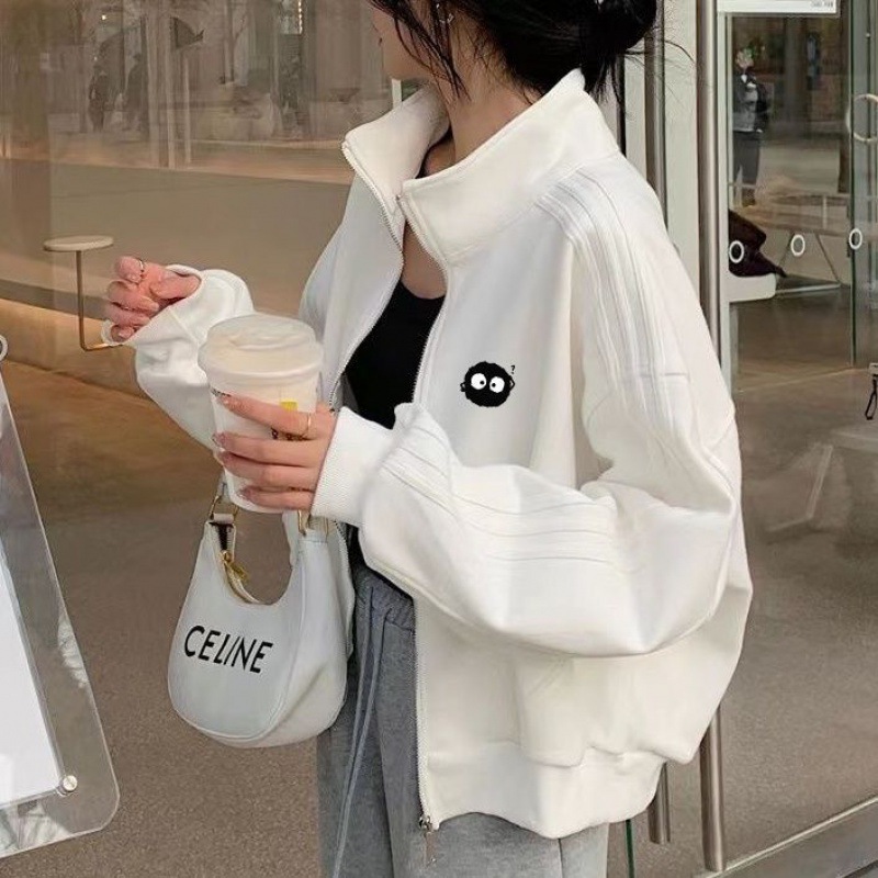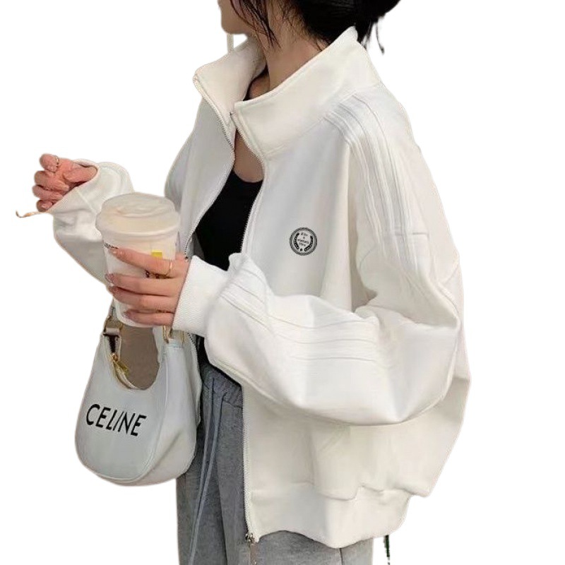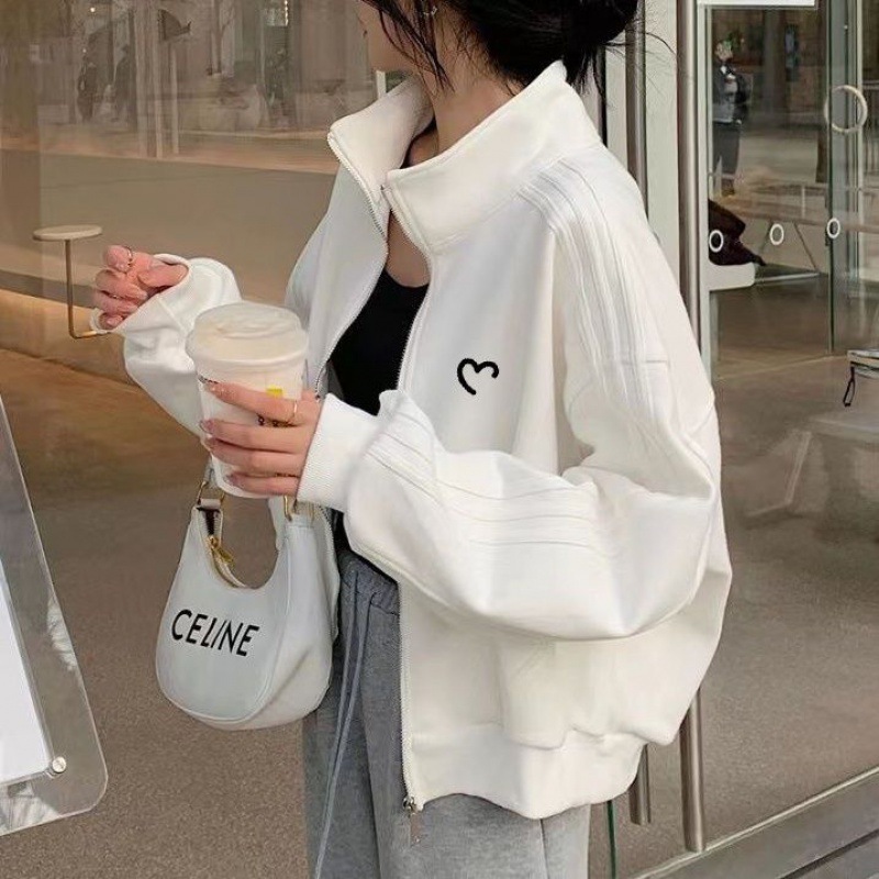 Baseball uniform stand collar coat women's 2024 spring and summer thin student loose lazy print short jacket top