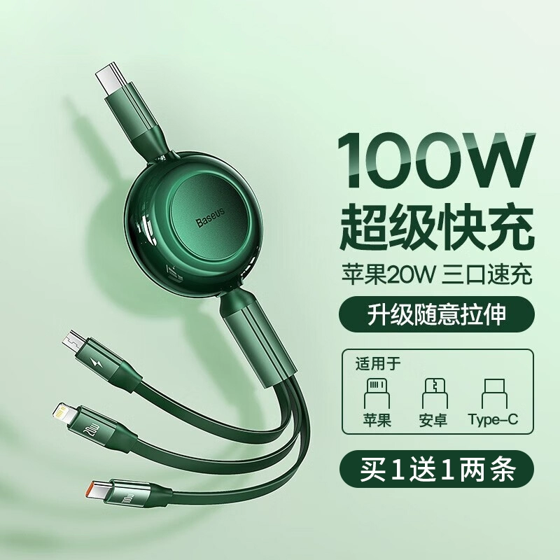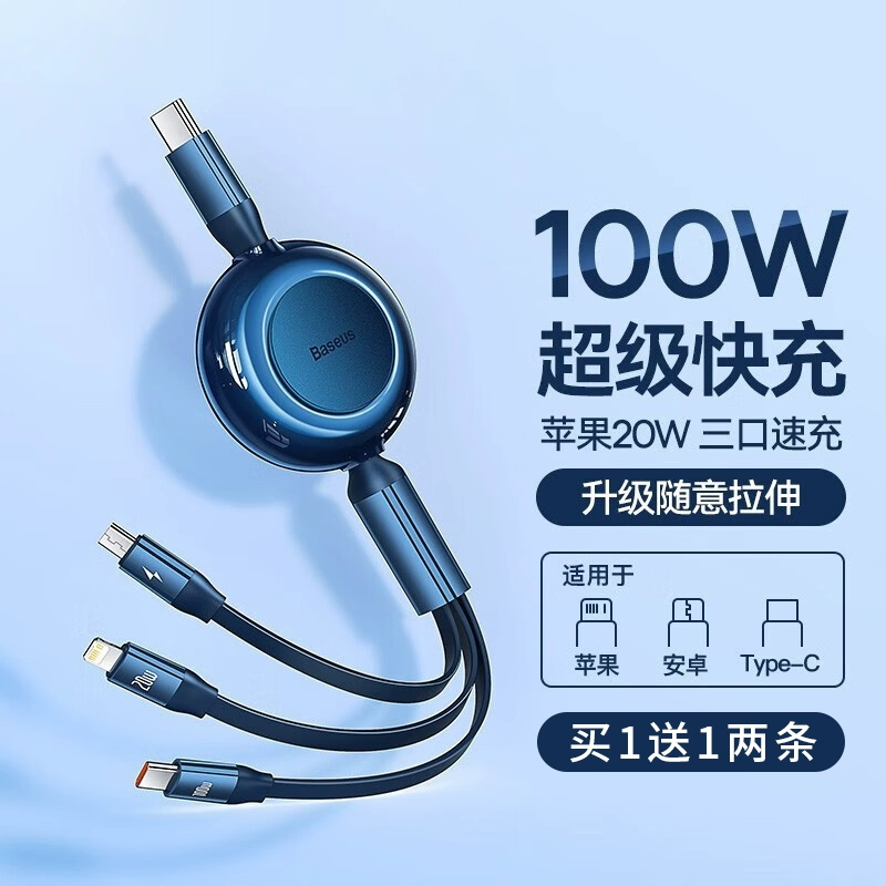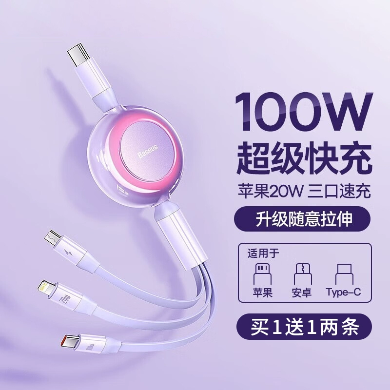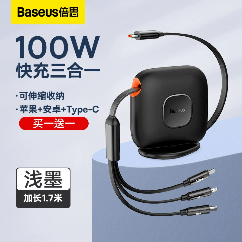 | nameOriginal | Baseus 100W data cable three-in-one telescopic desktop one-to-three charging cable fast charging car multi-function storage suitable for Apple 14pro mobile phone pd20w Huawei type-c Android iPad |