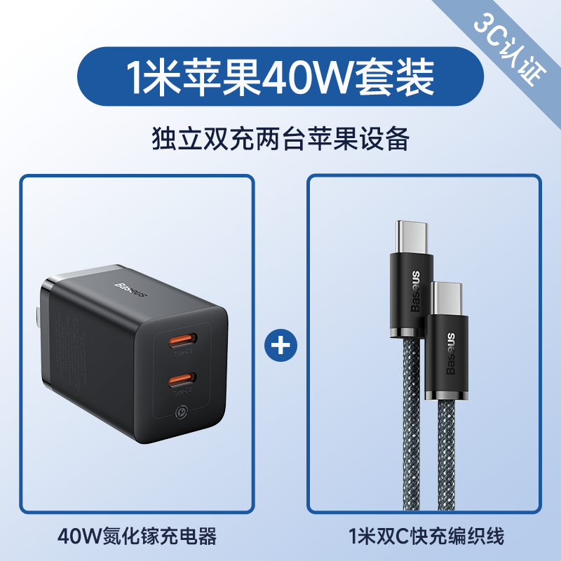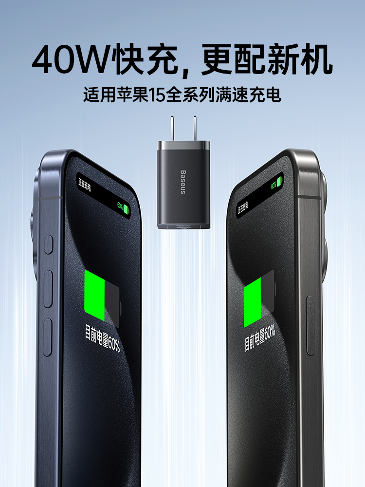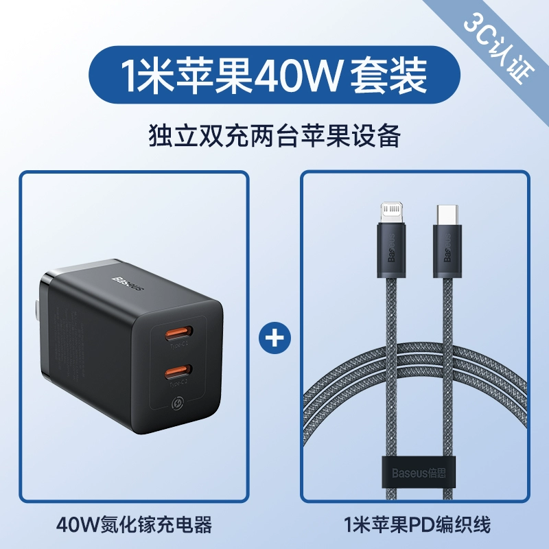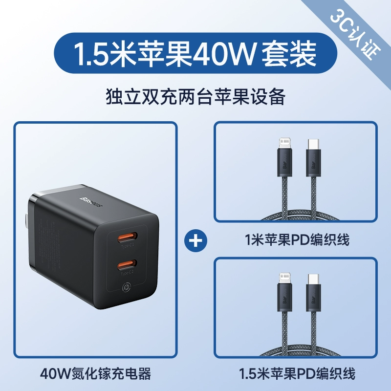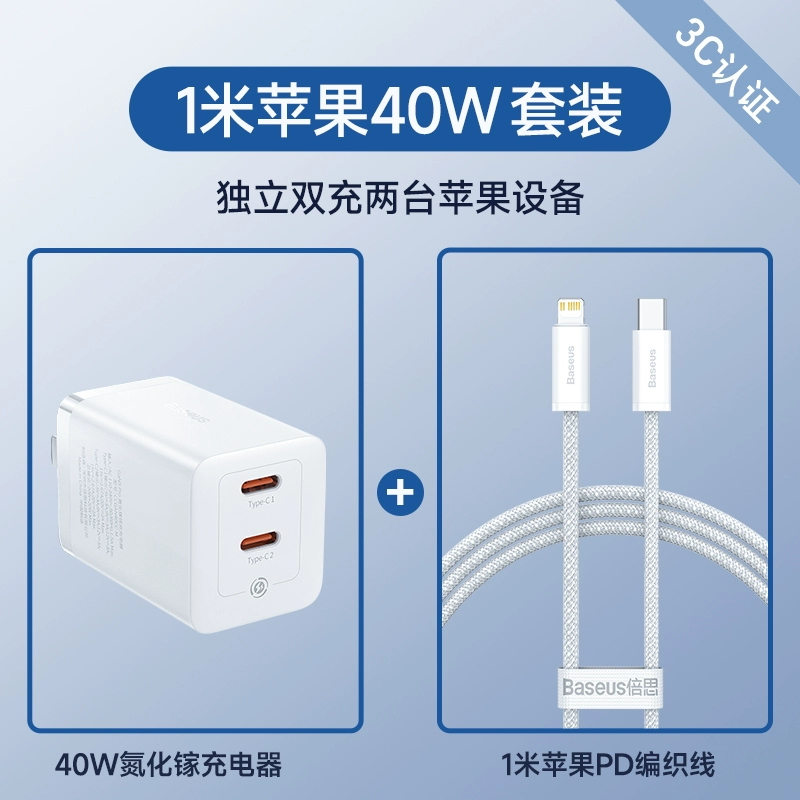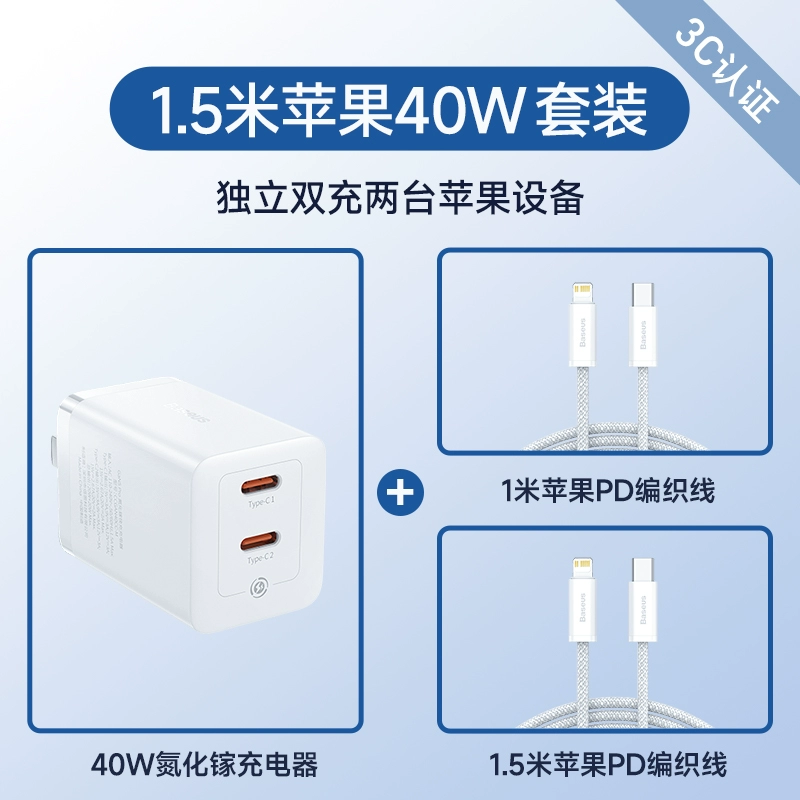 | nameOriginal | Baseus 40W gallium nitride charger is suitable for Apple iPhone15 charging head 13Promax mobile phone 14 fast charging 12 plug PD20w dual-port Type-C data cable |