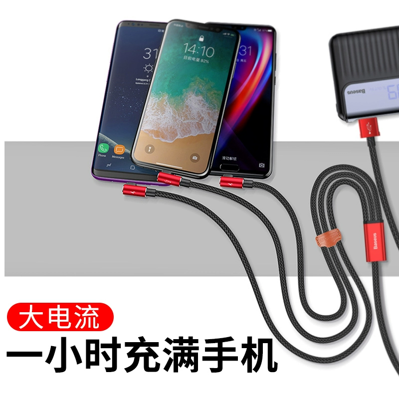 | nameOriginal | Baseus data cable three-in-one charging cable mobile phone fast charge 7plus one-to-three Apple x Android type-c four-head universal car multi-function Huawei red Xiaomi extended portable short elbow |