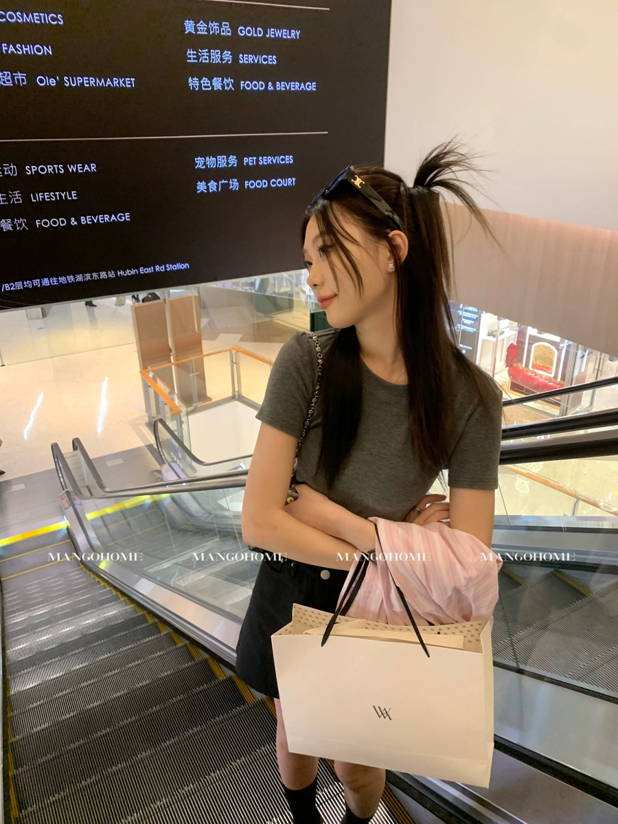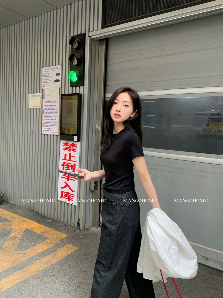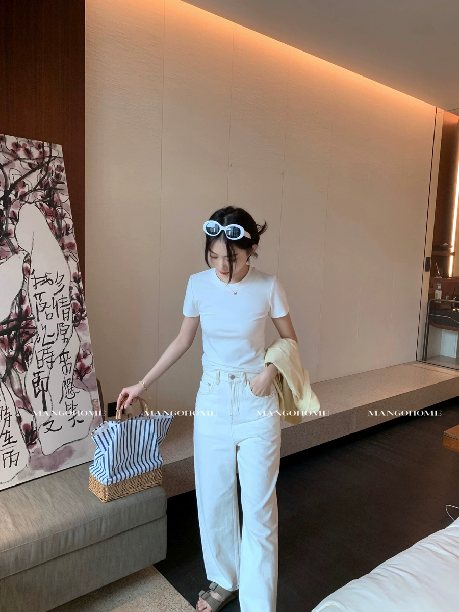 Basic brushed cotton slim fit round neck short-sleeved T-shirt
