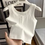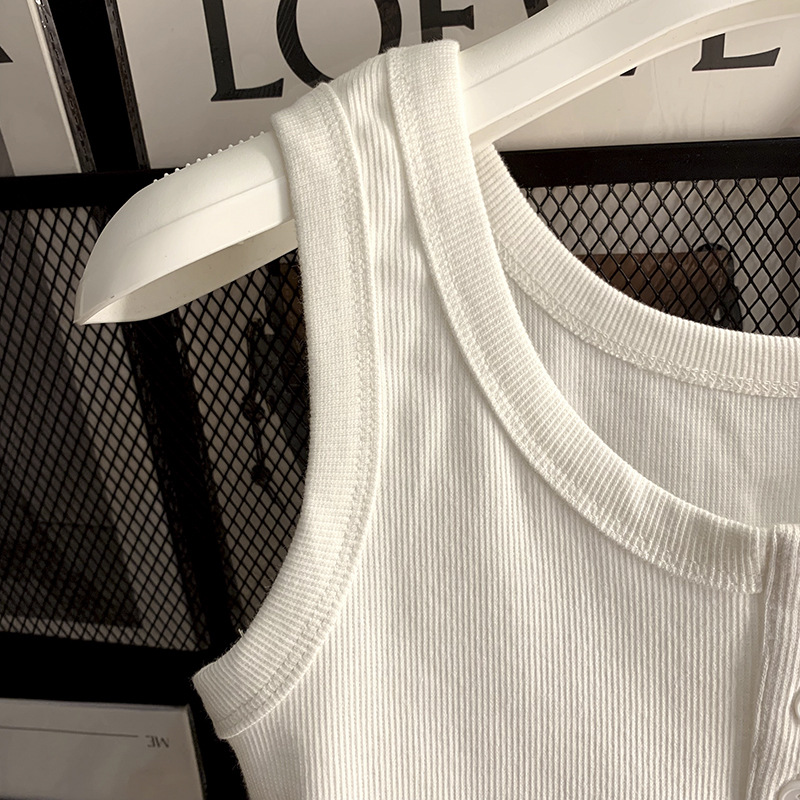| nameOriginal | Basic Button Sling Small Vest Women's Sleeveless T-shirt Summer New Slim-fit Slimming Short Base Shirt Top Trendy |