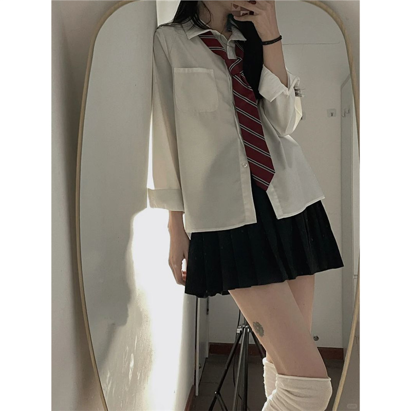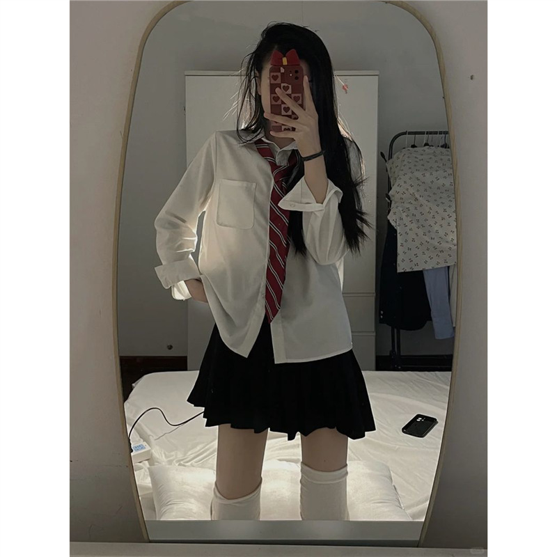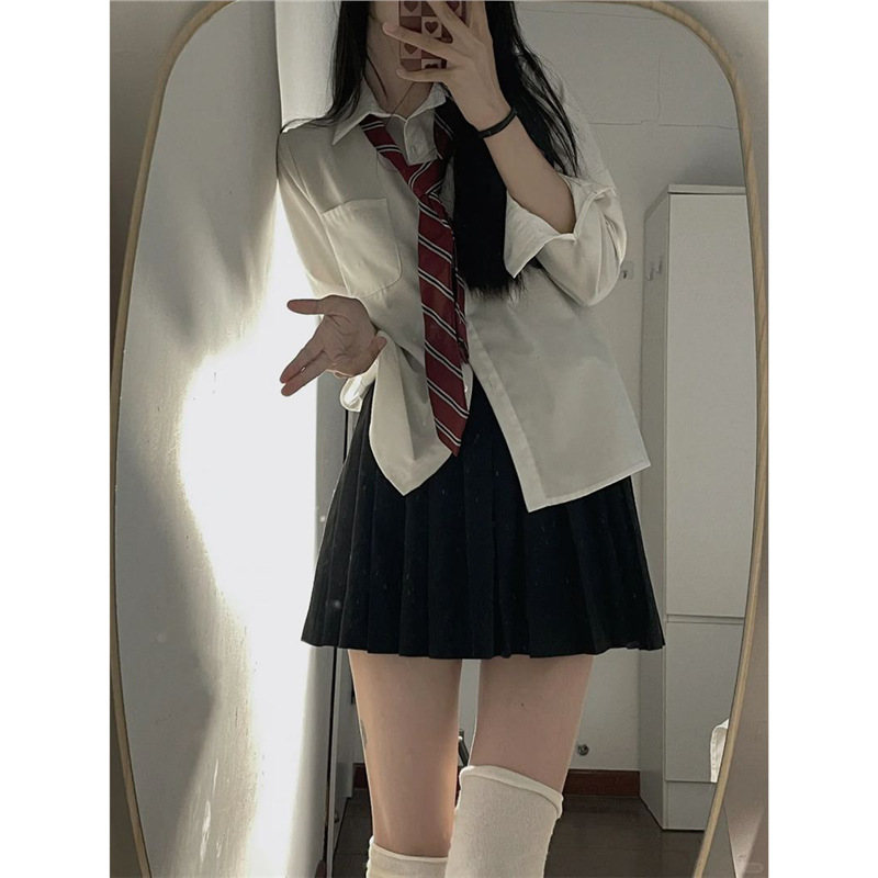 | nameOriginal | Basic College Style Slimming Top Skirt for Autumn and Winter JK Uniform Shirt Pure Desire Style Long Sleeve Solid Color suit Women |