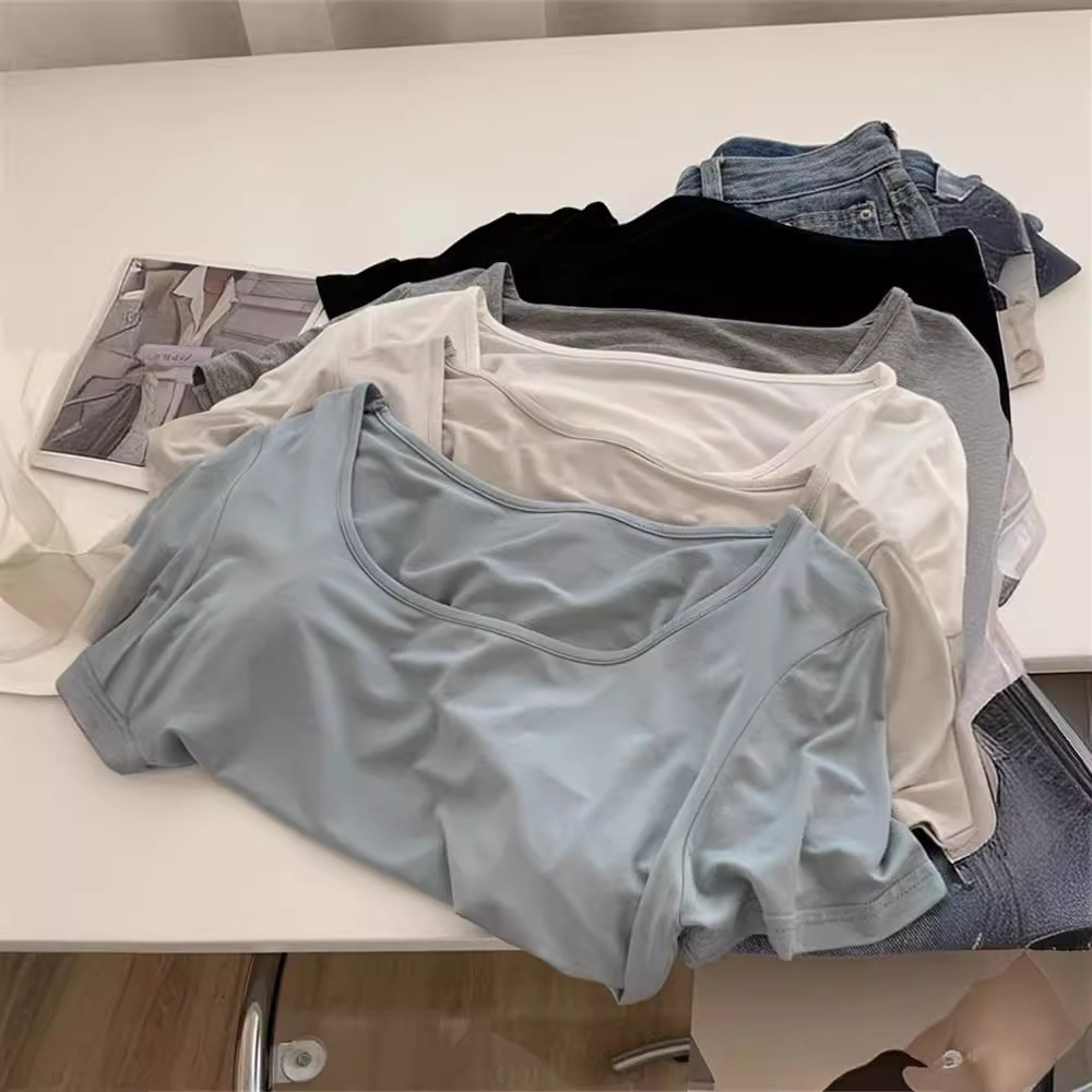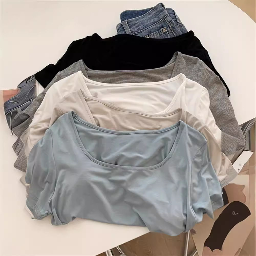 Basic Draped Square Neck Modal Short-Sleeved T-Shirt Women’s Slim-Fit Slimming Short Base-Layer Shirt Top Summer Thin