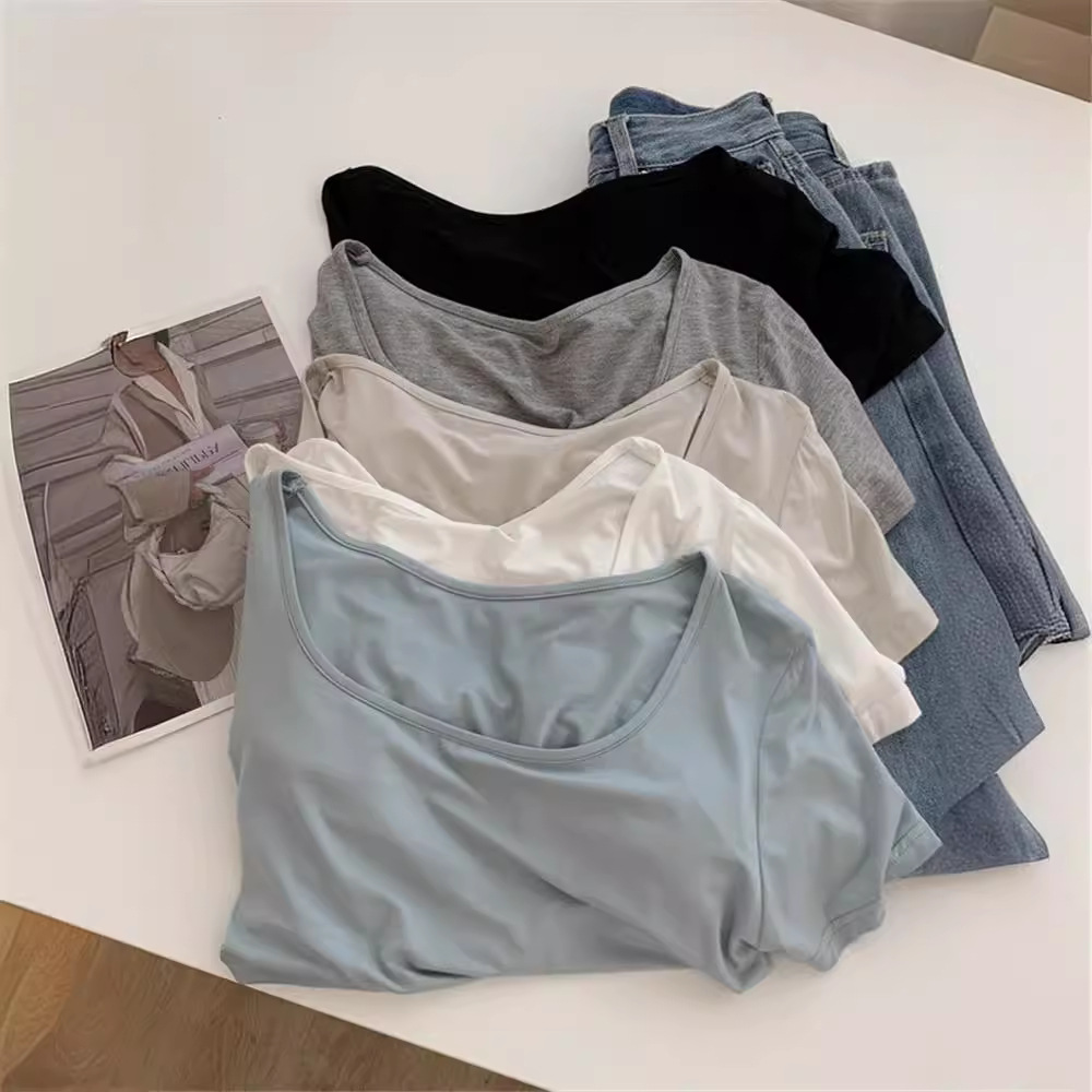 Basic Draped Square Neck Modal Short-Sleeved T-Shirt Women's Slim-Fit Slimming Short Base-Layer Shirt Top Summer Thin