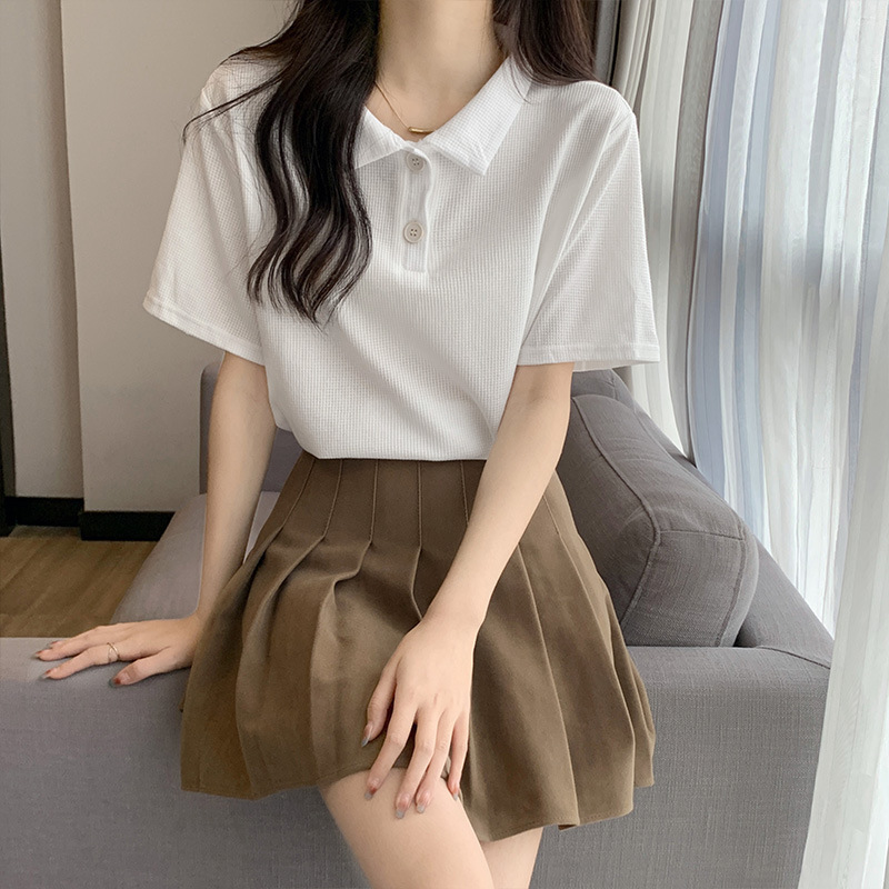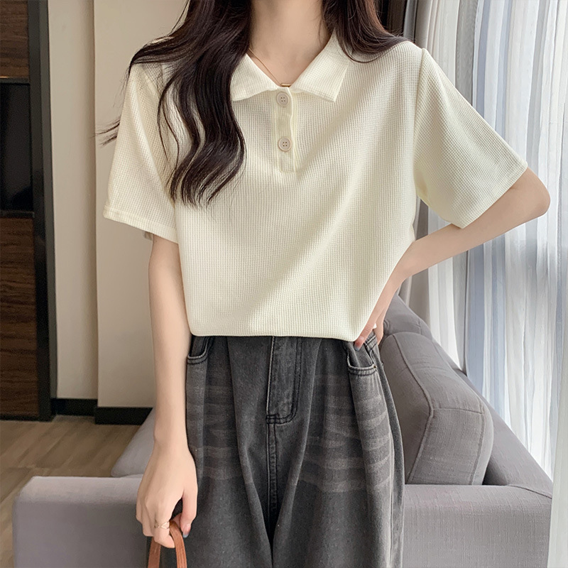 | nameOriginal | Basic Polo Shirt Short-sleeved Top Women's Summer 2024 New Casual All-match Loose Slim Waffe T-shirt |