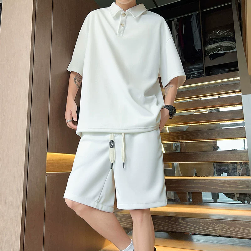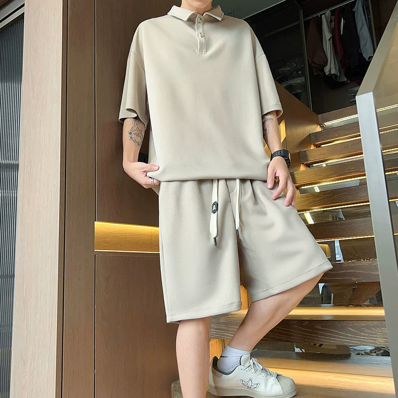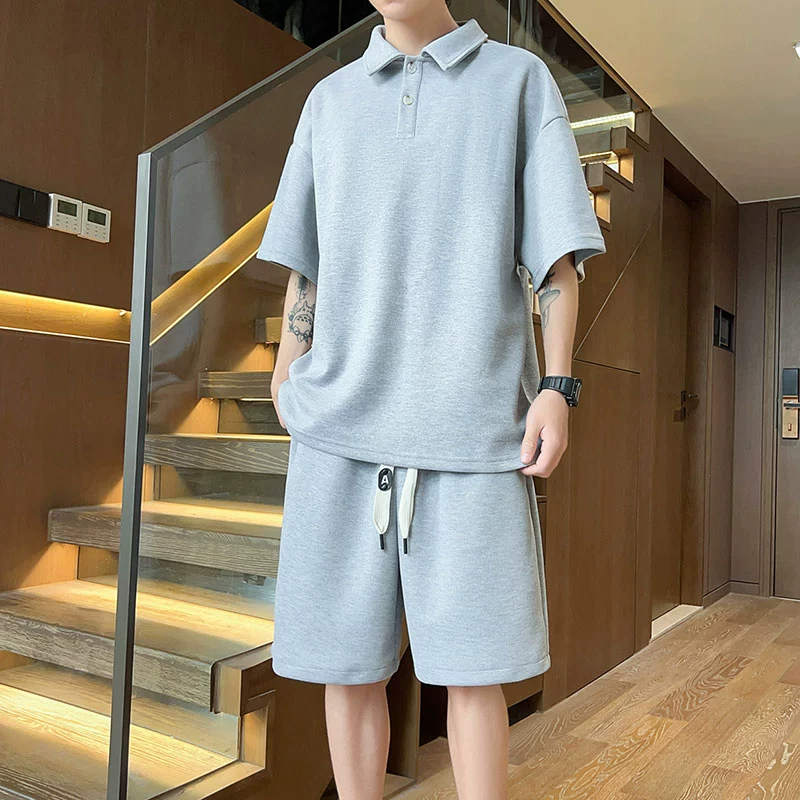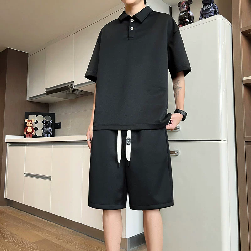 | nameOriginal | Basic solid color polo shirt suit for men in summer plus size plus size trendy fat people loose casual short-sleeved five-quarter pants |