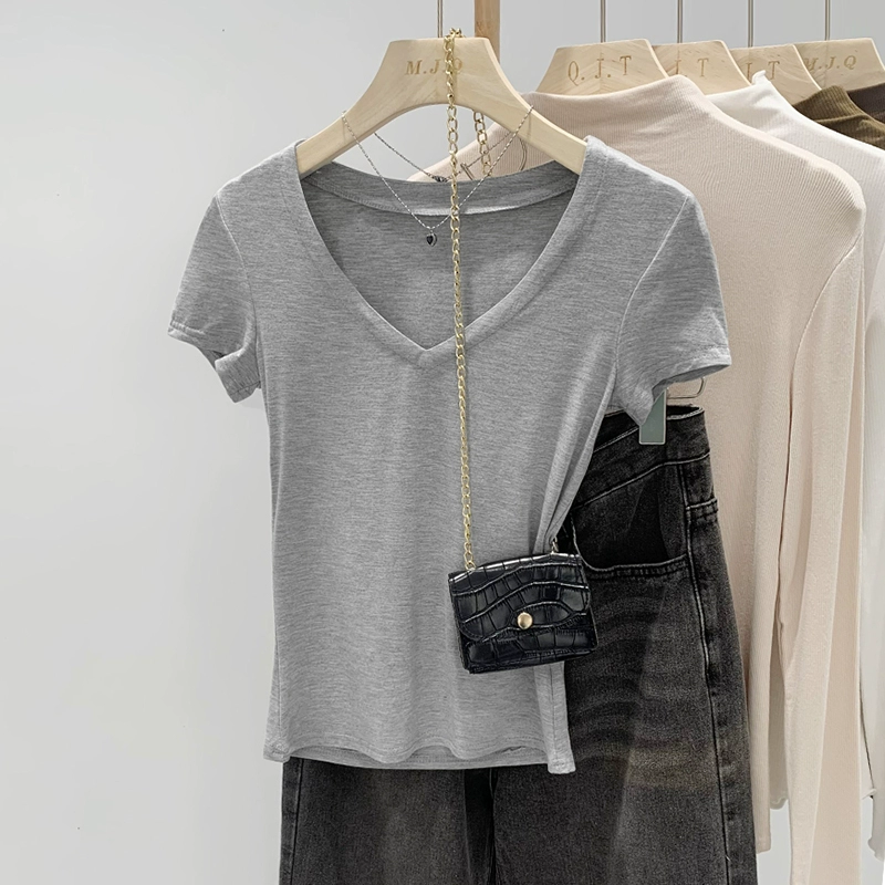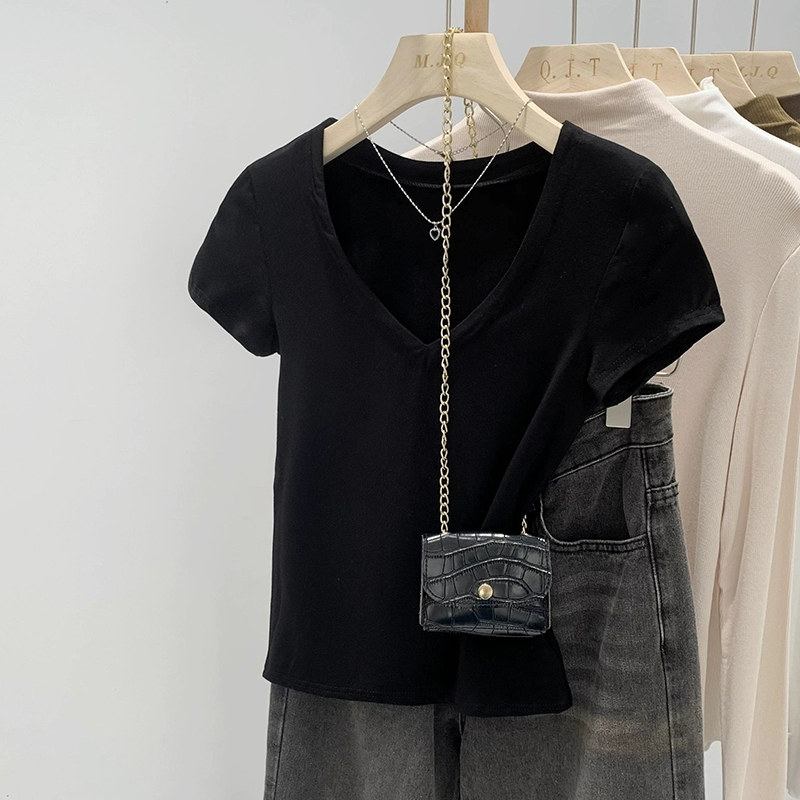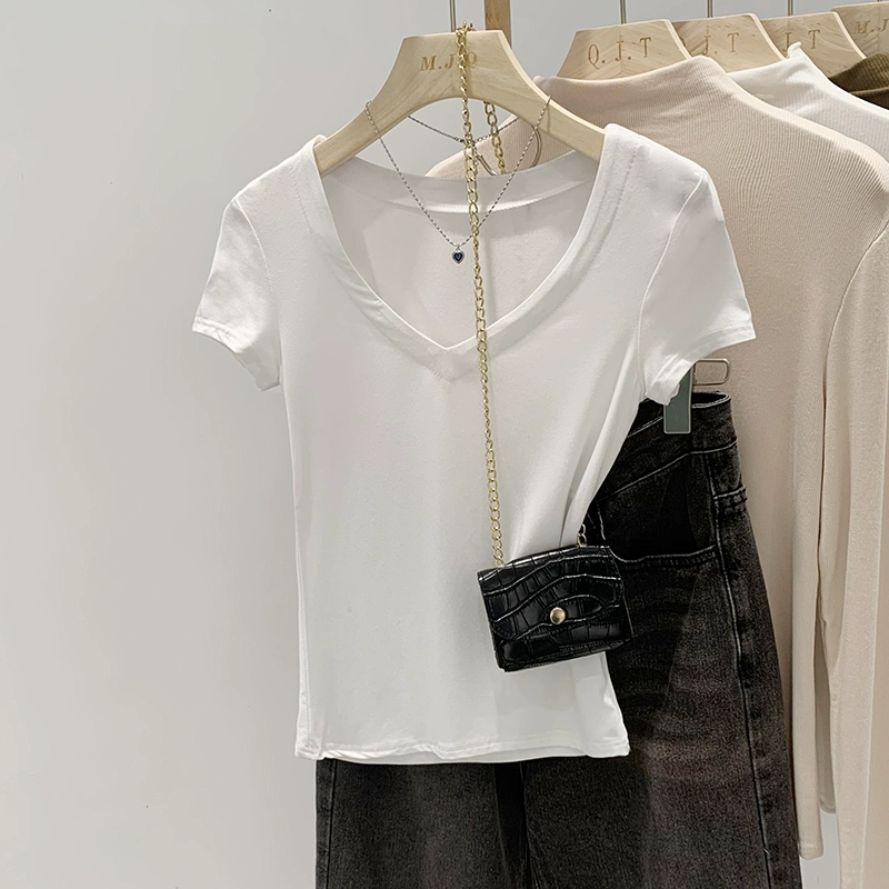 Basic summer slim fit shoulder top short-sleeved T-shirt