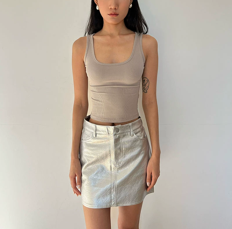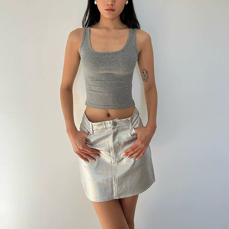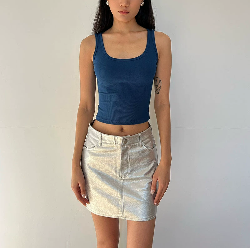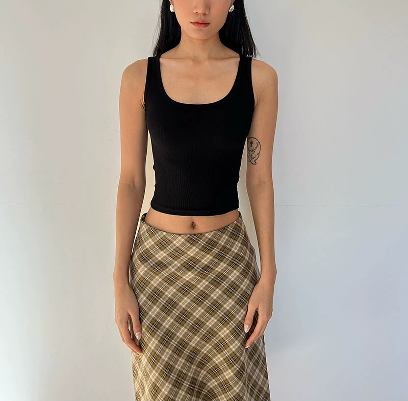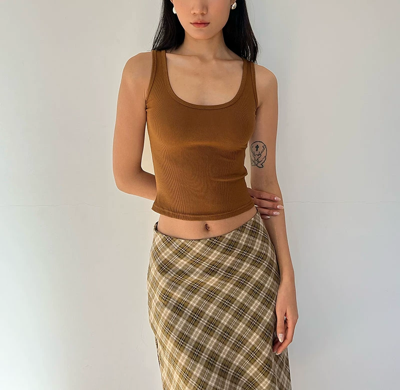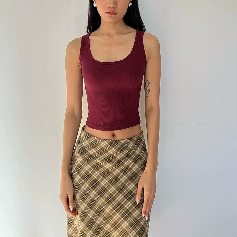 Basic U-neck slim-fitting Kardashian solid color short vest