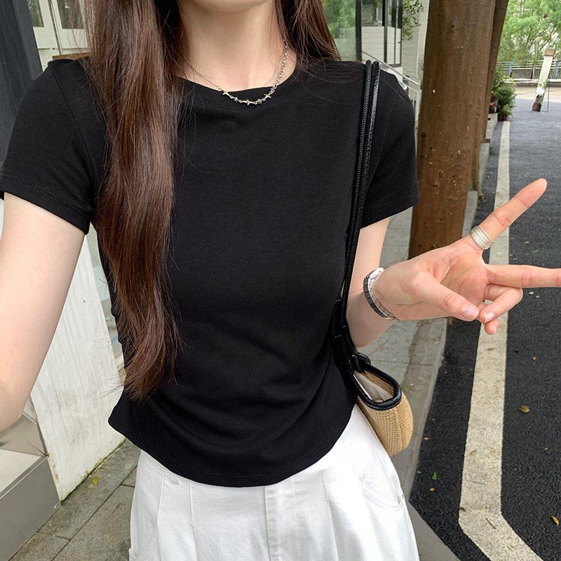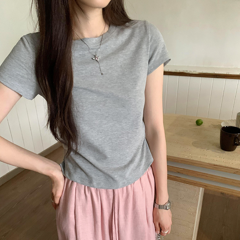 | nameOriginal | Basic Versatile Solid Color Round Neck Pleated Short-sleeved T-shirt Women's Fashionable 2024 Summer Short Shoulder Slimming Top |