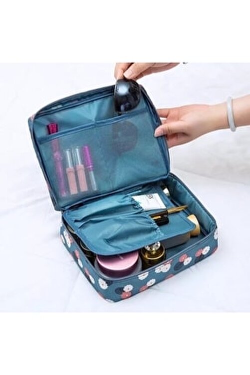 Blue floral pattern travel and makeup bag is available for multi-purpose use. Size 22×18×8 is packaged product.