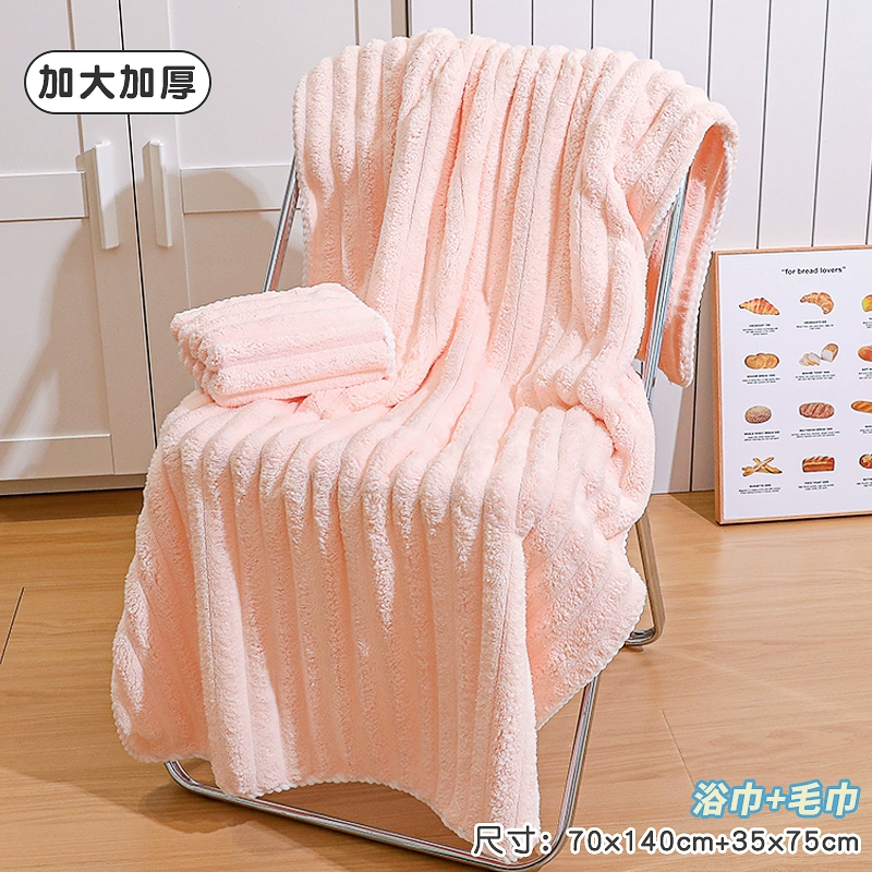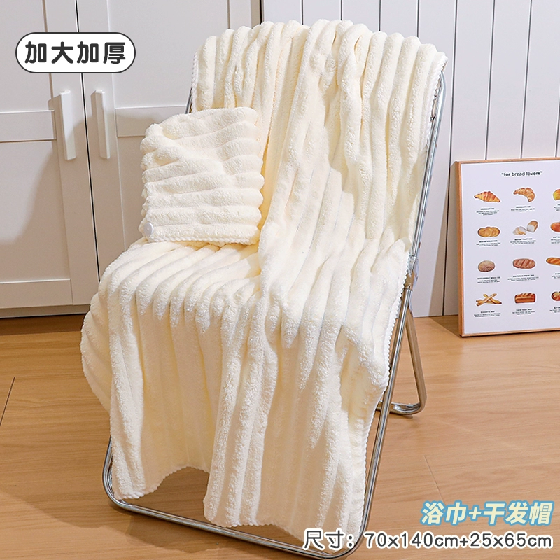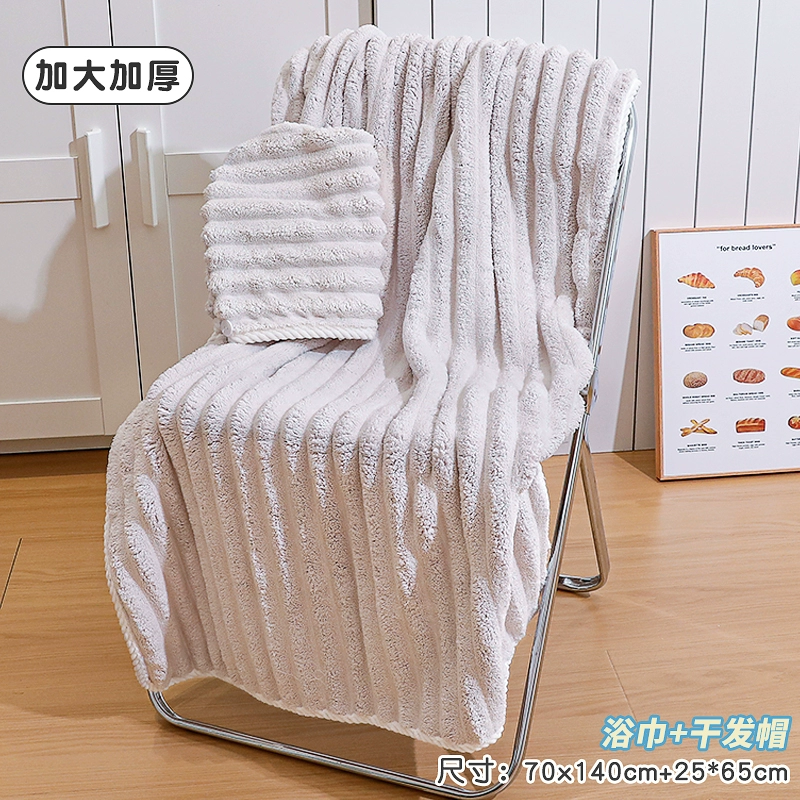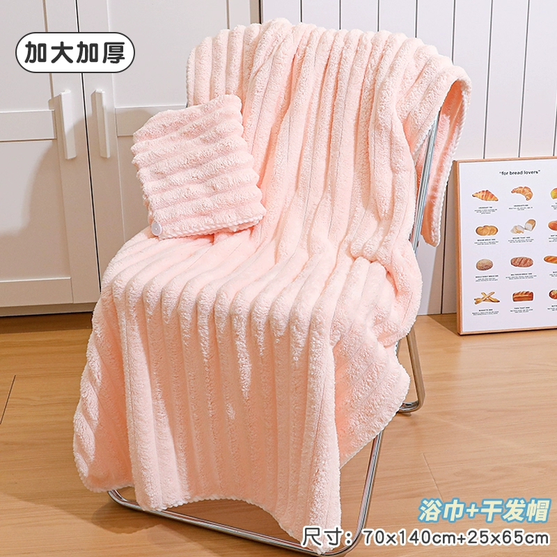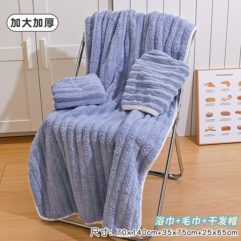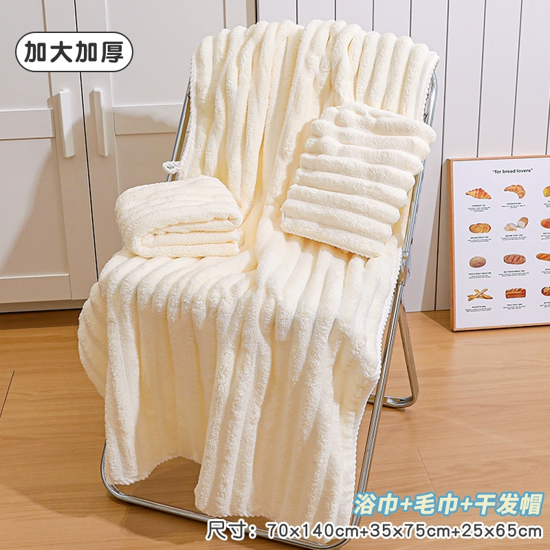 Bath towel for women, absorbent, quick-drying, non-shedding, oversized thickened bath towel, coral velvet hair drying cap, household three-piece set