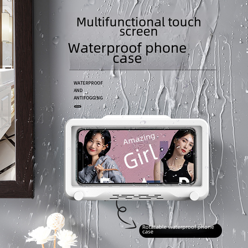 | nameOriginal | Bathroom mobile phone waterproof box non-perforated wall-mounted touch screen mobile phone bracket bathroom bath drama can be 360 rotated |