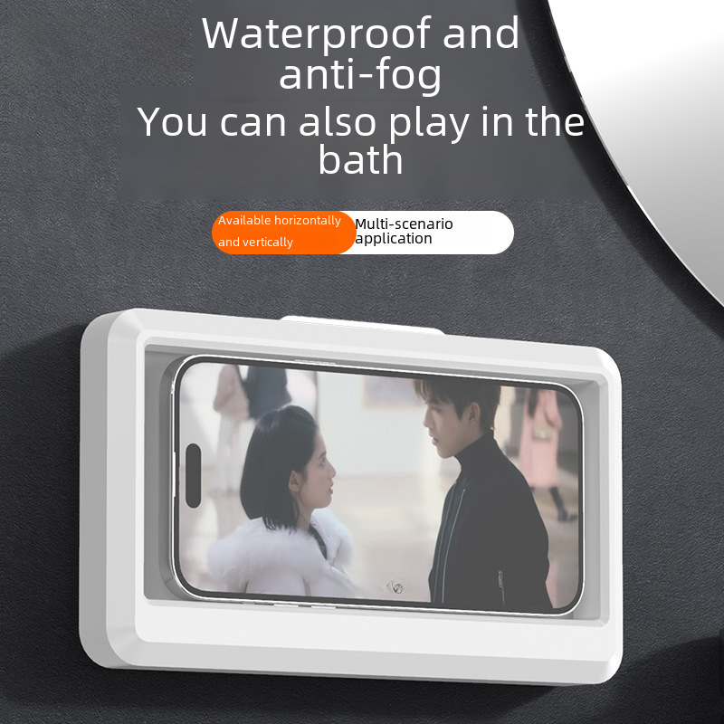 Bathroom Waterproof Anti-fog Mobile Phone Box Punch-free Wall-mounted Mobile Phone Bracket Chasing Drama Artifact Rotatable Kitchen Waterproof Box