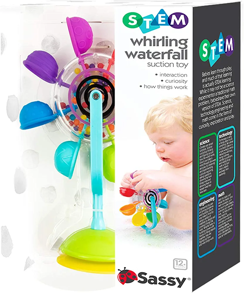 Sassy Whirling Waterfall Suction Toy for Bathtime – Stem – Ages 12+ Months, Multi
