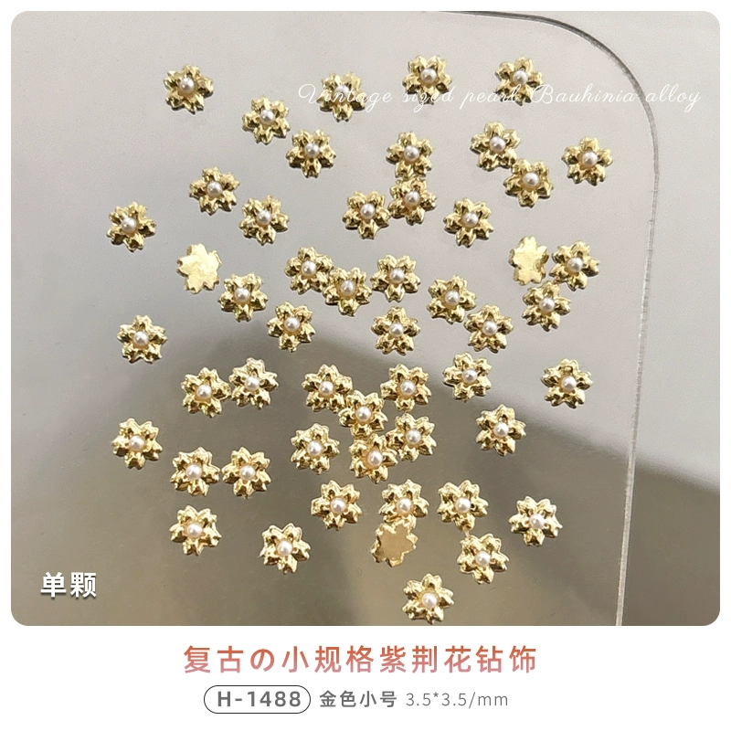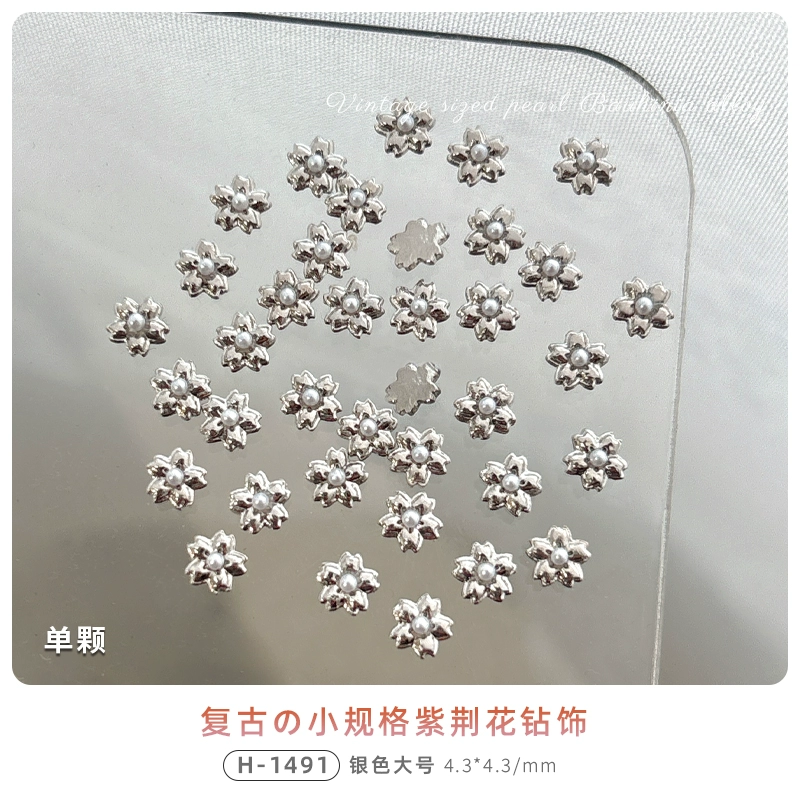 | nameOriginal | Bauhinia flower nail art jewelry mini flower three-dimensional pearl alloy diamond retro silver nail diamond internet celebrity hot style |