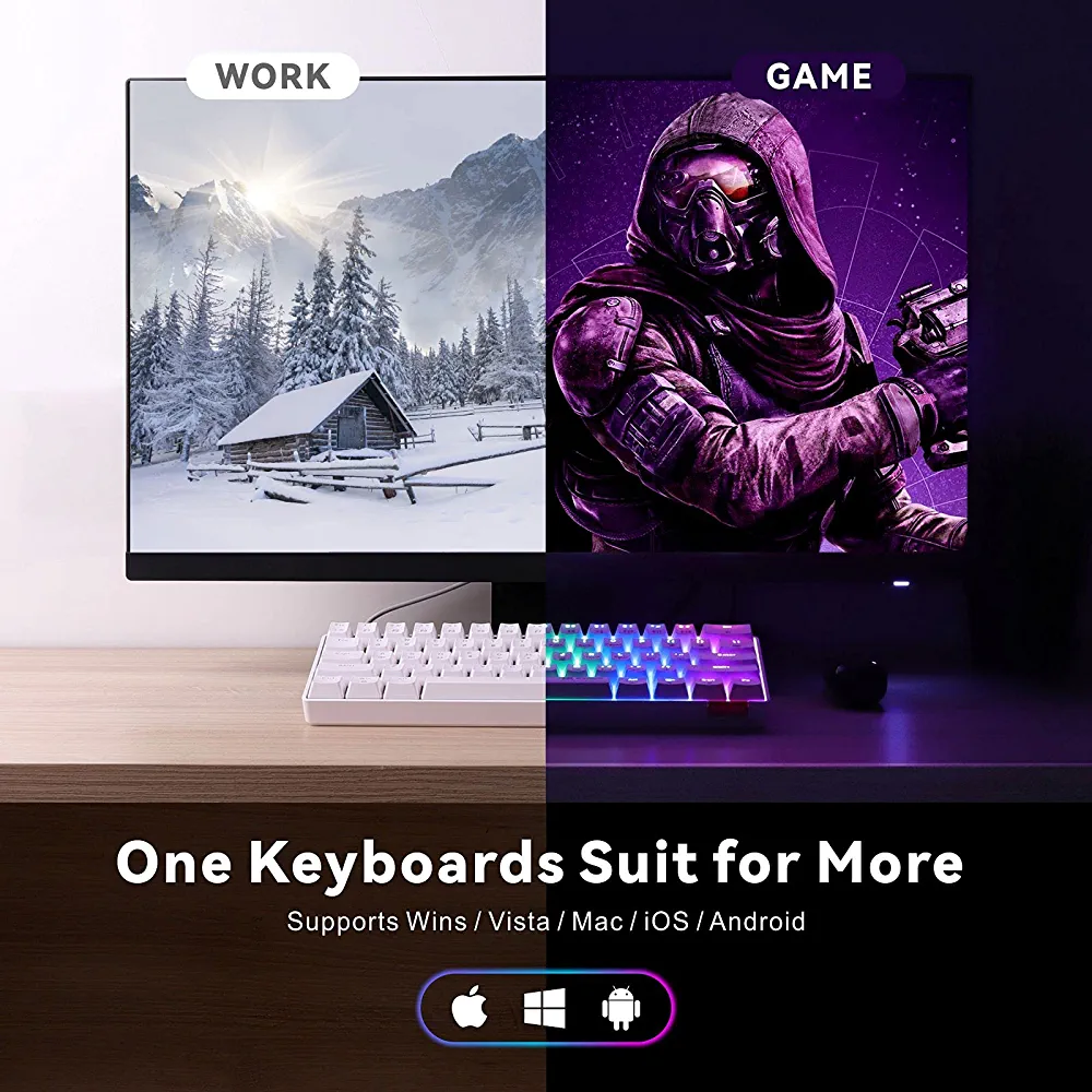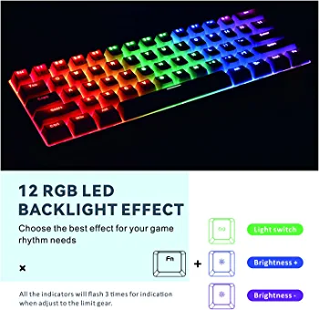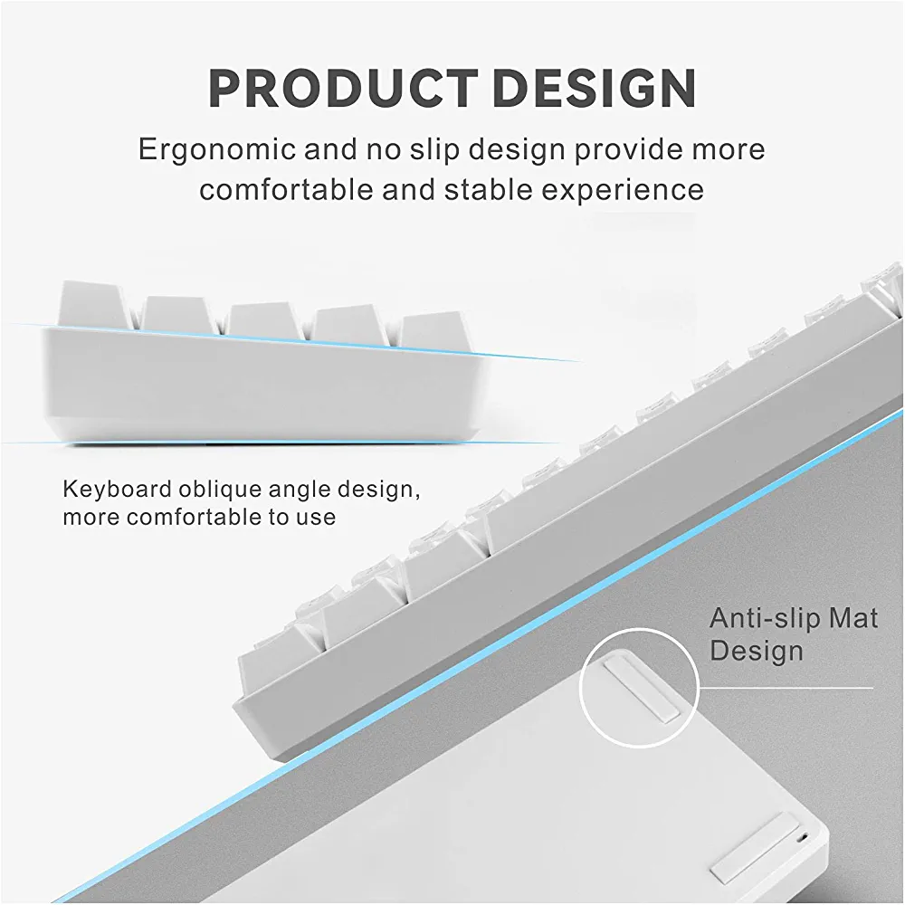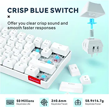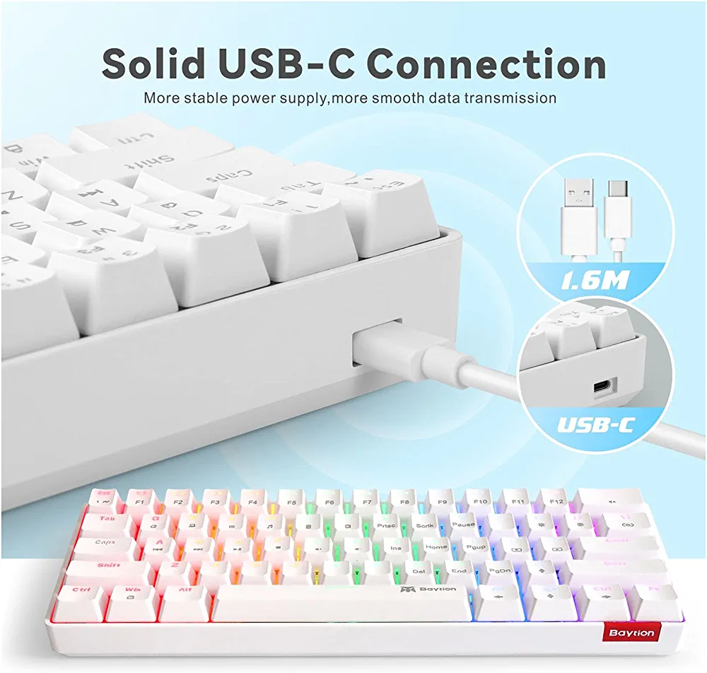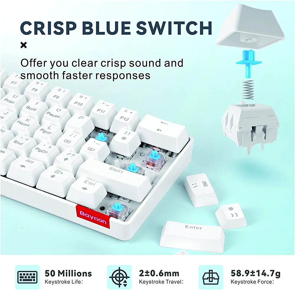 | nameOriginal | Mechanical Gaming Keyboard, Baytion 61 Keys Ultral Compact Wired Keyboard with Blue Switches and RGB Backlit for iOS, Android and Windows, White |