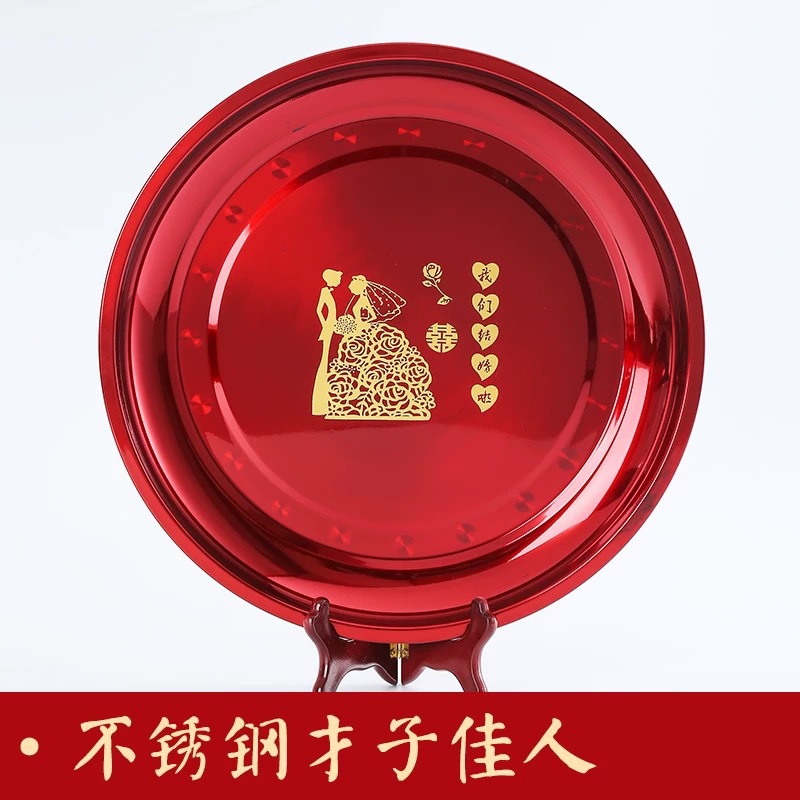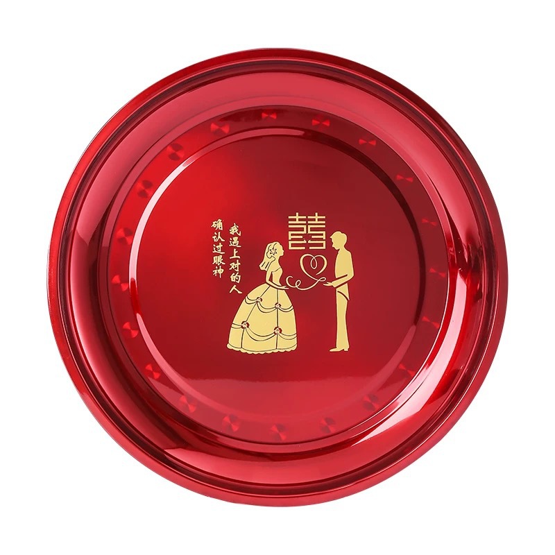 | nameOriginal | BB4C wholesale stainless steel disc wedding tea tray household red plate festive red plate wedding home accompany |