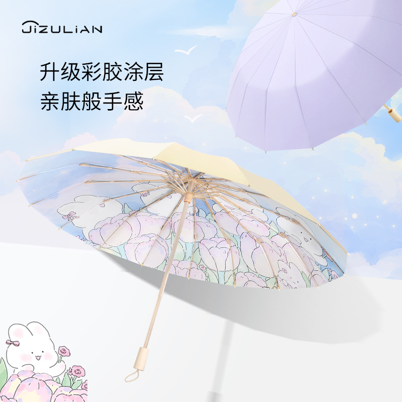 BB4C wholesale sun umbrella UV-proof female folding 16-bone umbrella strong wind-resistant rain-proof dual-use sunshade