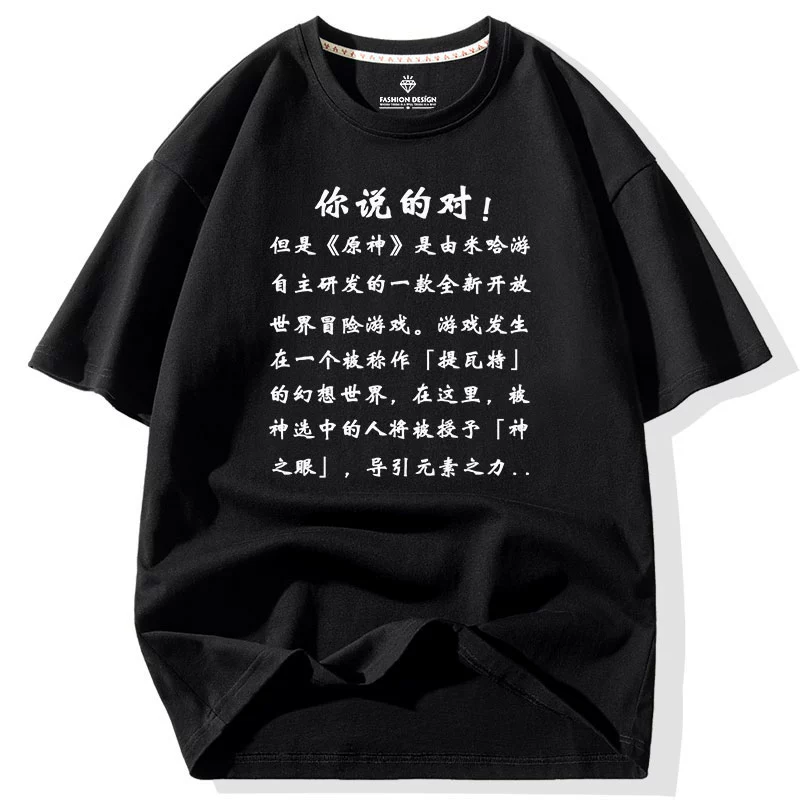 | nameOriginal | BBS spoofs Genshin Impact Black I play Genshin Impact What’s wrong with Genshin Impact Pure cotton short-sleeved T-shirt loose casual men’s summer clothes |