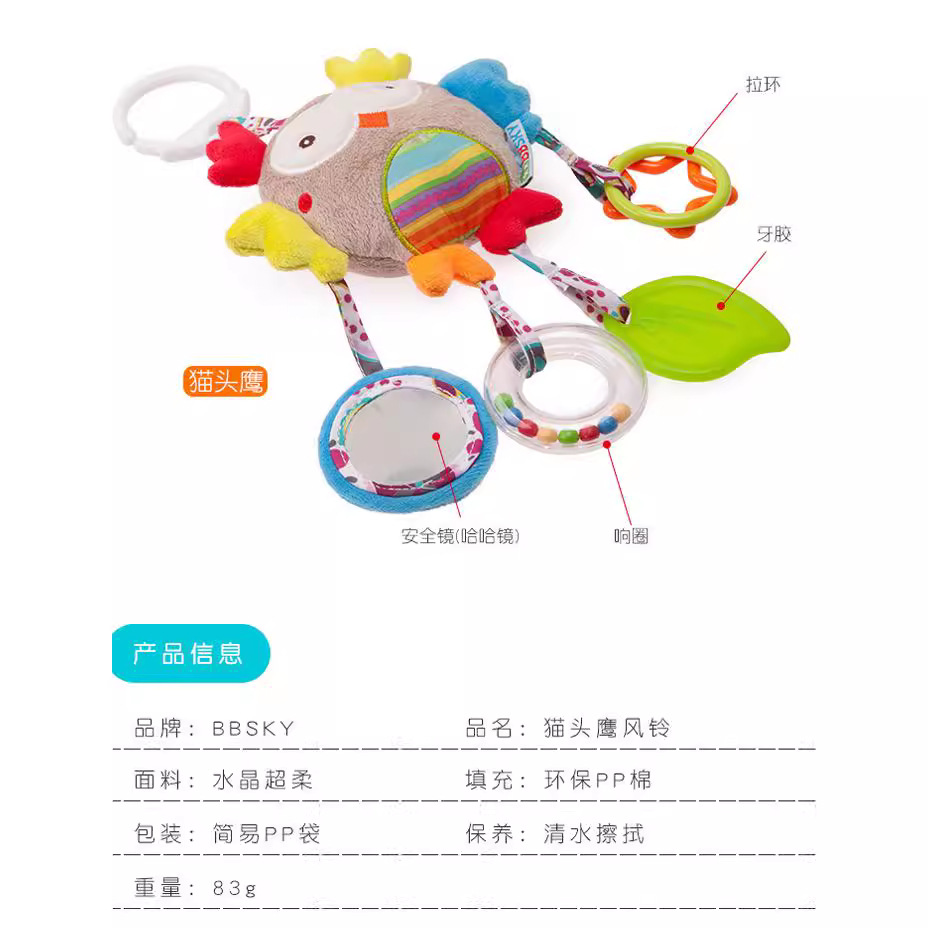| nameOriginal | BBSKY cute cartoon animal wind chime baby toy plush bed hanging car hanging toy entrance |