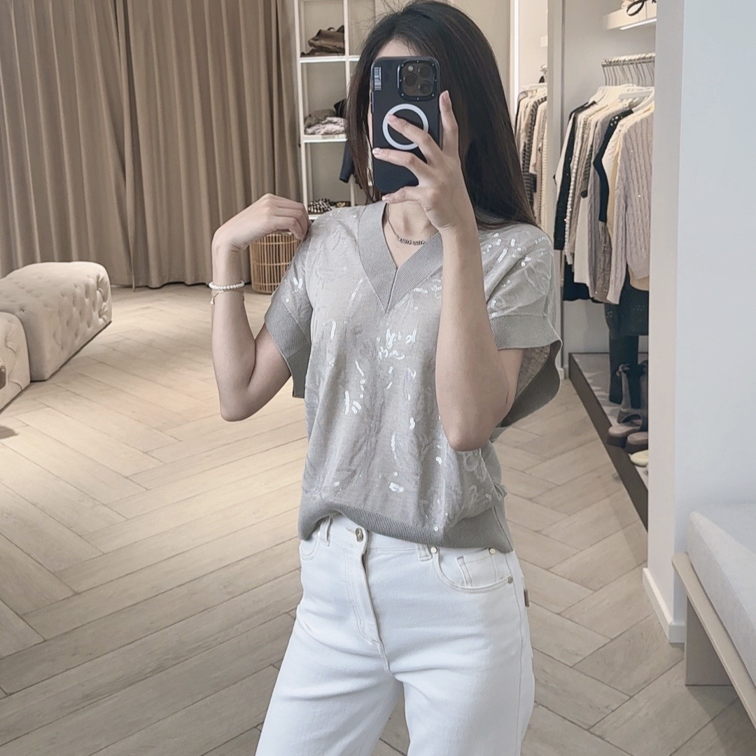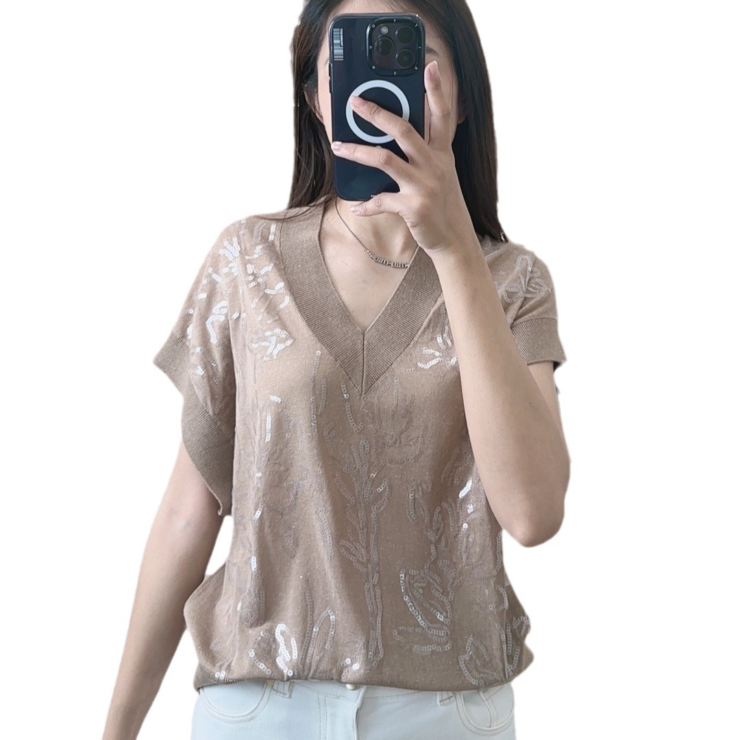 | nameOriginal | BC Foreign Trade 2024 Summer New Linen Heavy Industry Sequin Flower Pattern Elegant Commuter Women's Top |