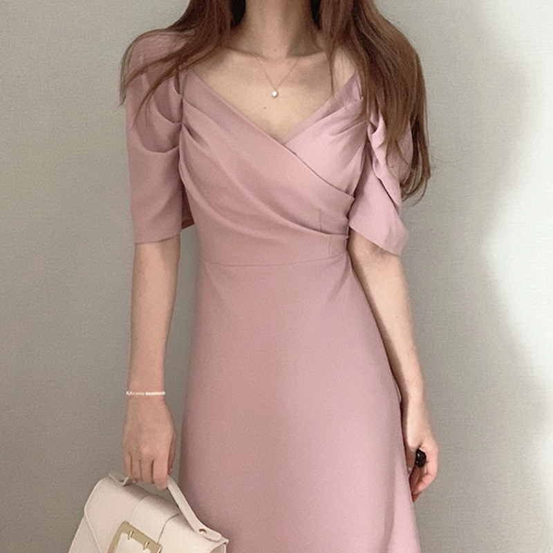 | nameOriginal | Be careful Korean ins leaking collarbone chiffon dress |