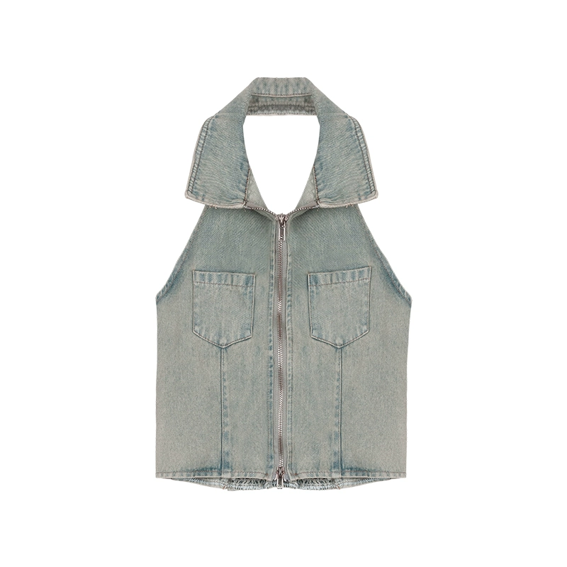 | nameOriginal | Be careful with American retro washed denim backless halter neck |