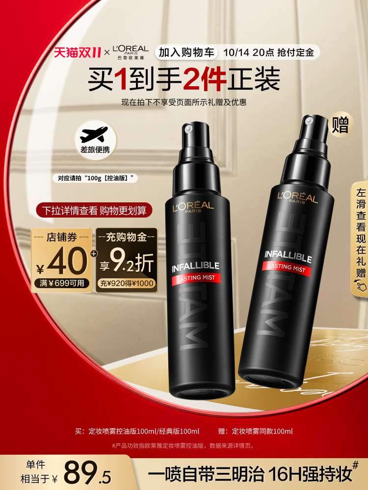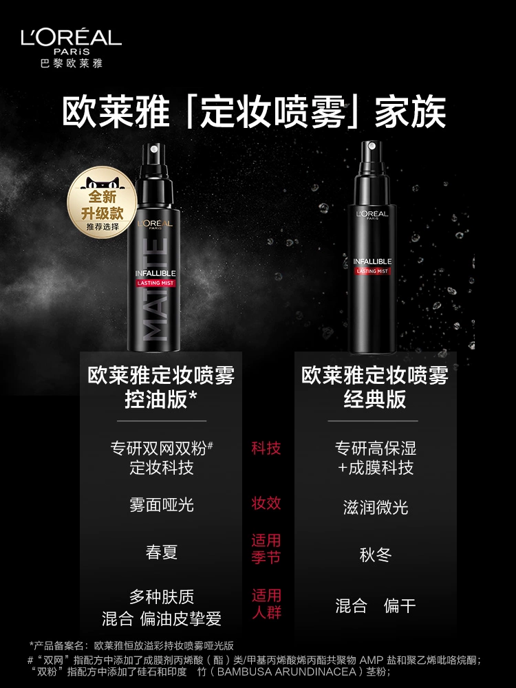 | nameOriginal | [Be the first to purchase during Double 11] L'Oreal Makeup Setting Spray Oil Control Version Long-lasting Moisturizing Long-lasting Dry Oily Skin Quickly Forms a Film |