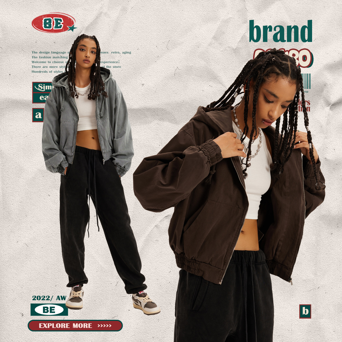 | nameOriginal | BE Women's Wear, 2023 Fall/Winter Heavy Vintage Washed Old American Spice Girls Short Coat Fashion Brand Women's Jacket |