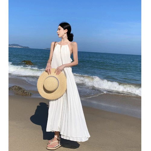 | nameOriginal | Beach photo dress, super fairy white chiffon suspender, island vacation beach dress, female elegant internet celebrity beach dress |