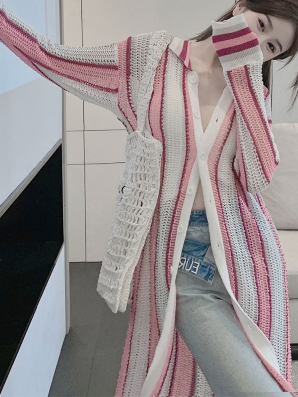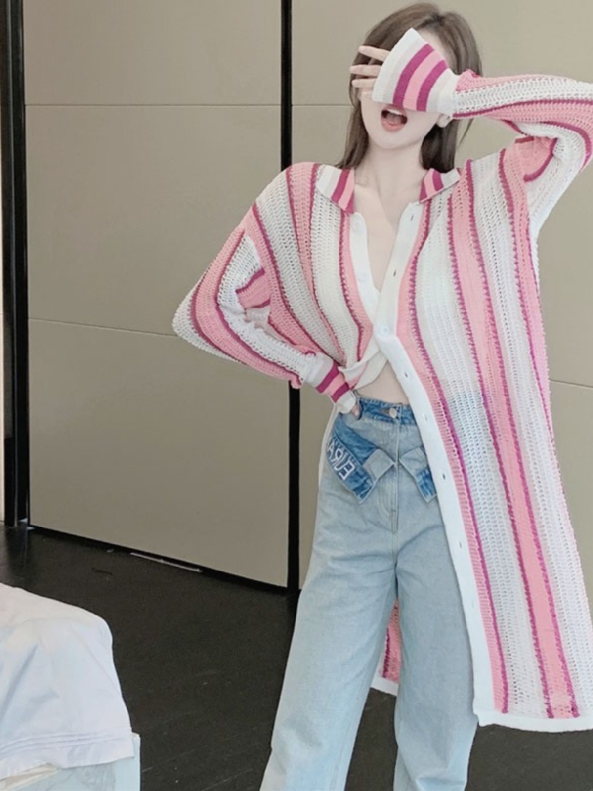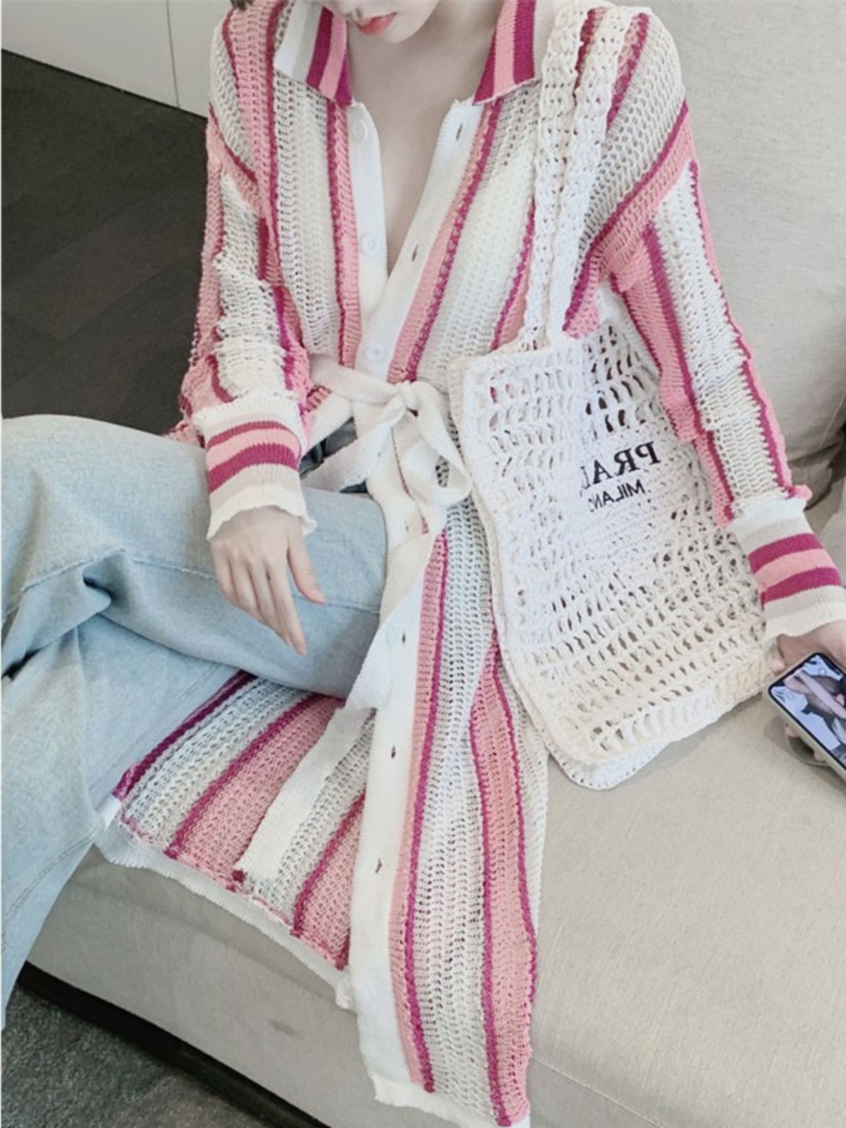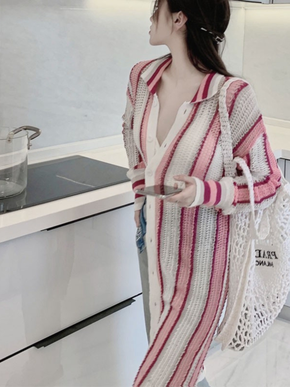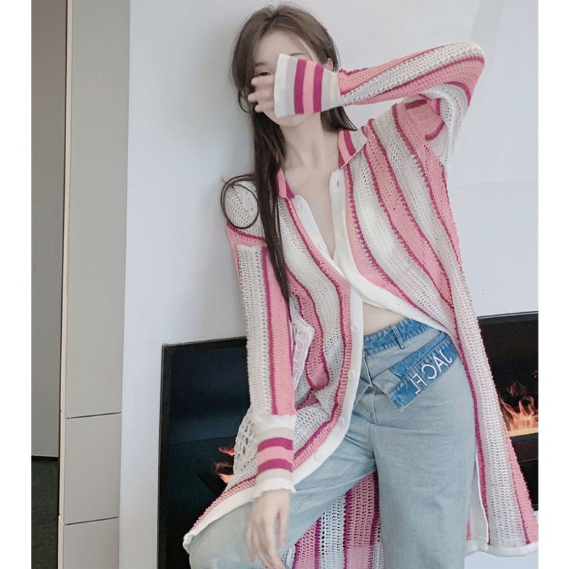 Beach Seaside Vacation Mid-length Hollow Knitted Cardigan Women’s Summer Thin Lazy Sunscreen Shawl Outer Blouse