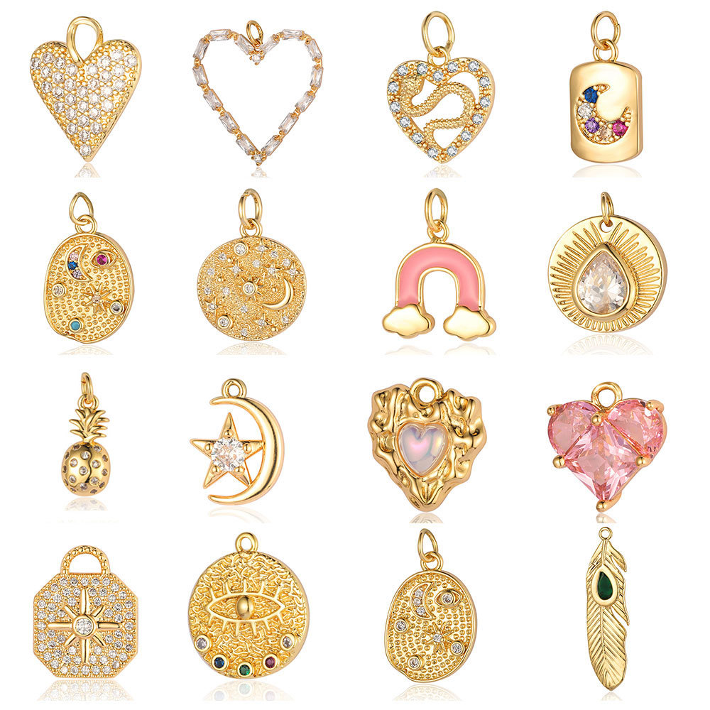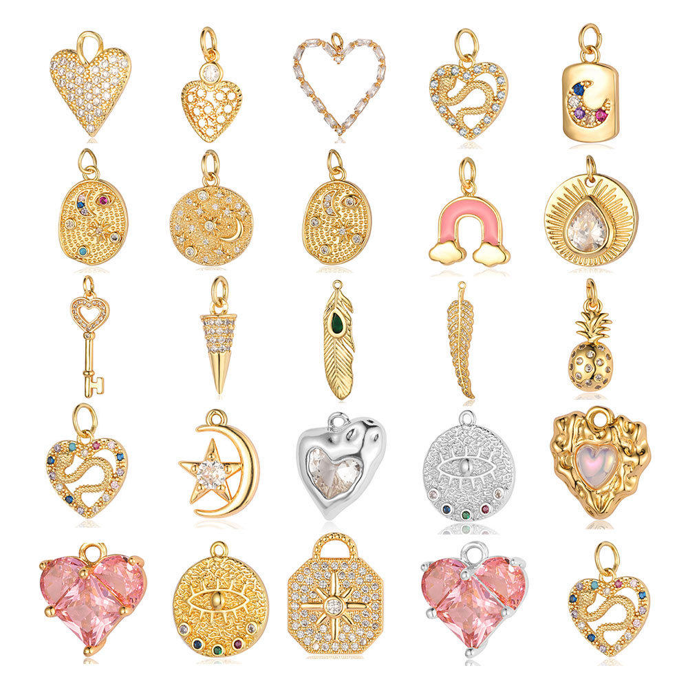 | nameOriginal | Bead love heart key rainbow feather copper zircon pendant snake star Moon pineapple eyes shaped zircon accessories |