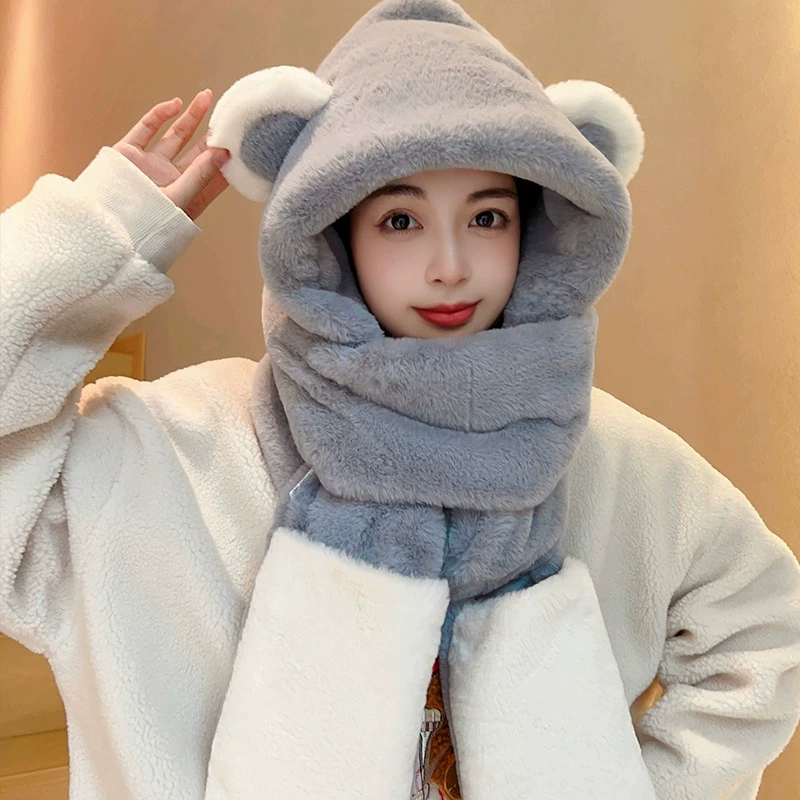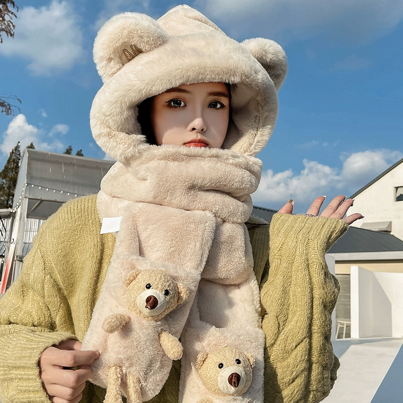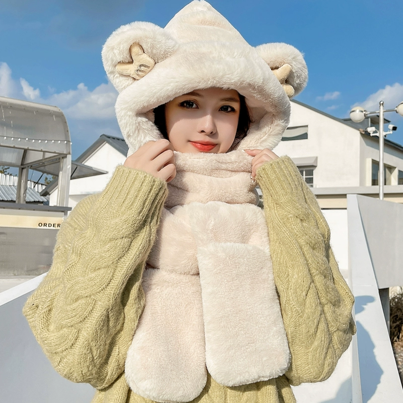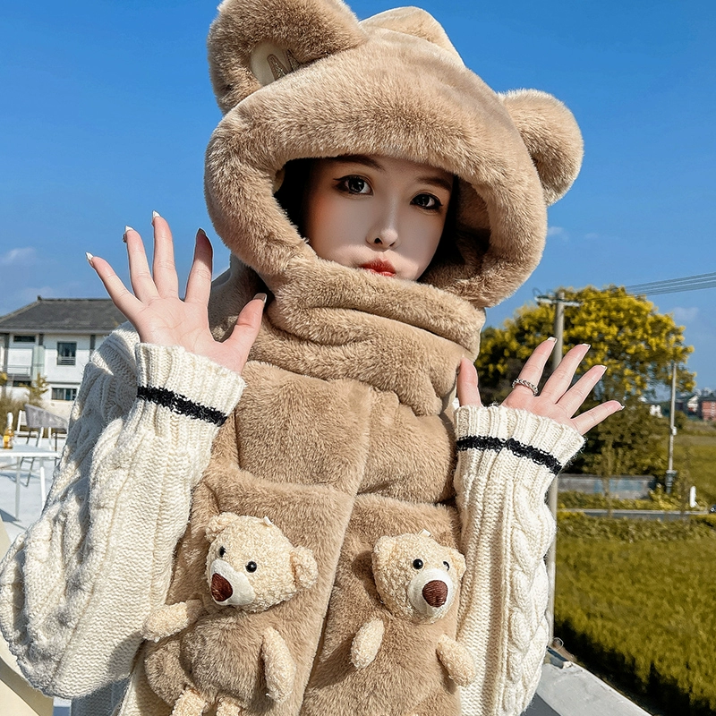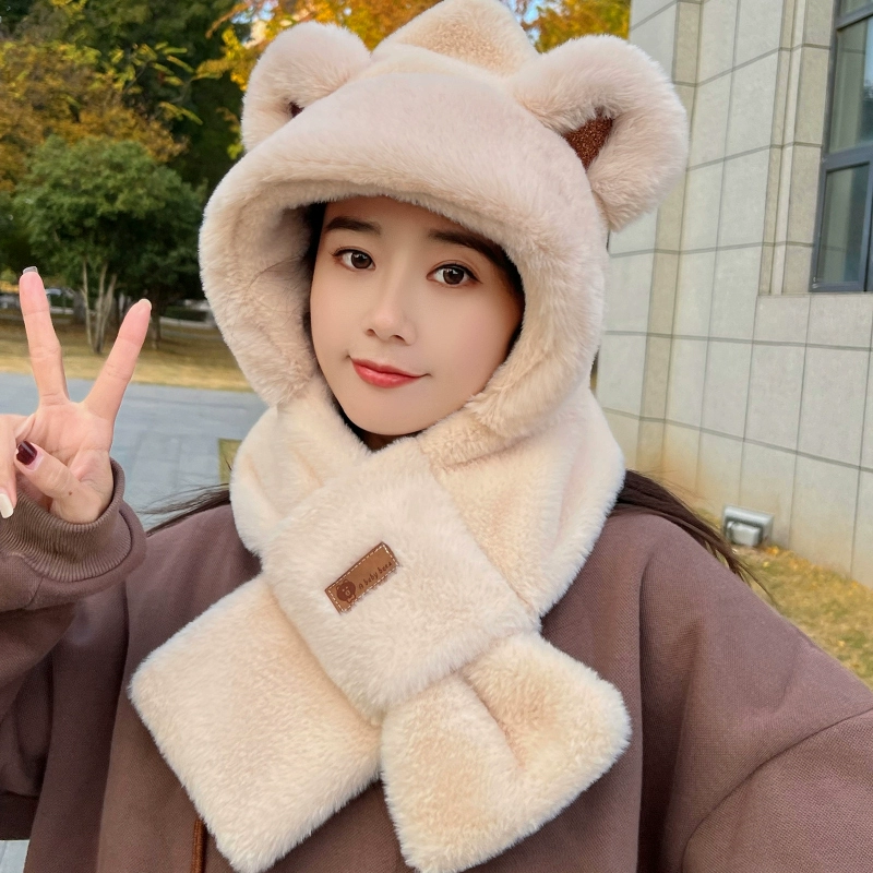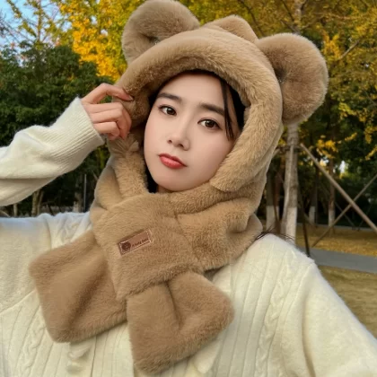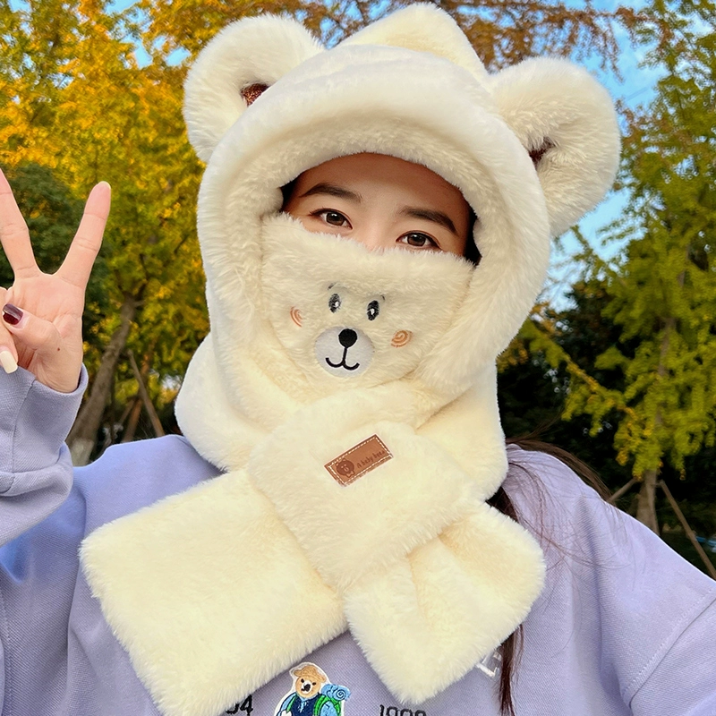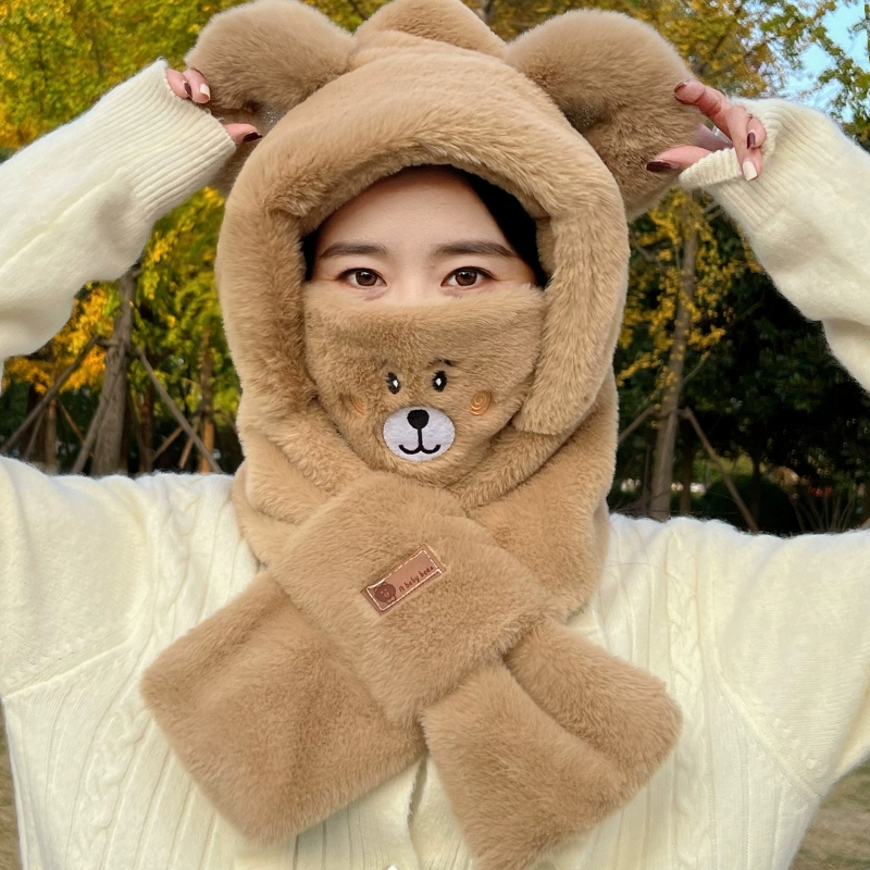 | nameOriginal | Bear Hat Scarf All-in-One Women's 2024 Autumn and Winter Cycling Thickened Plush Warm and Cute Windproof and Coldproof Mask |