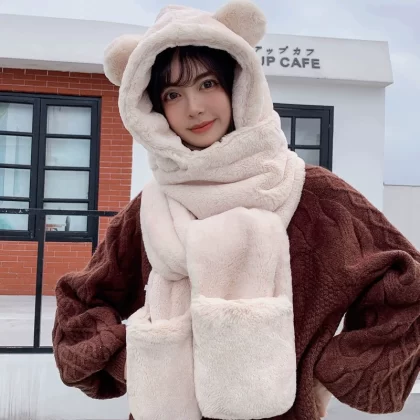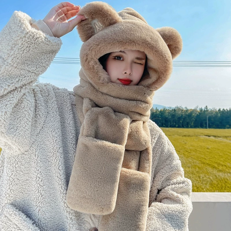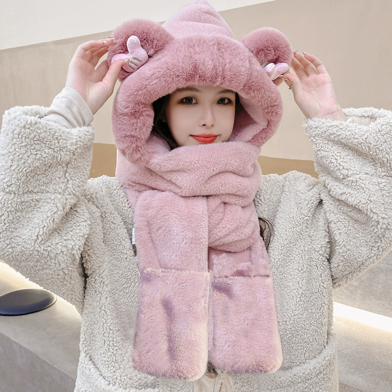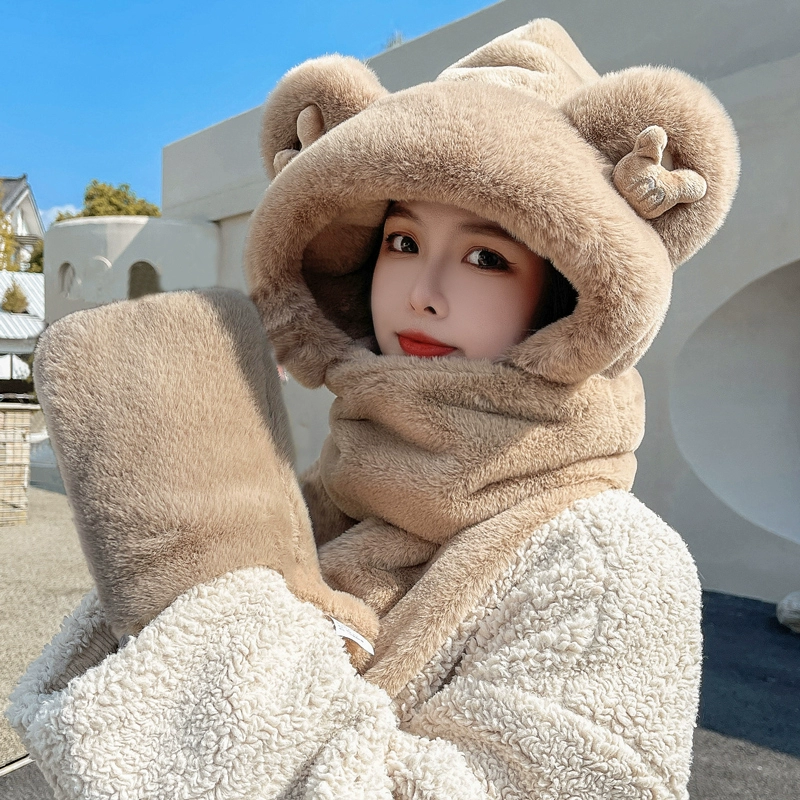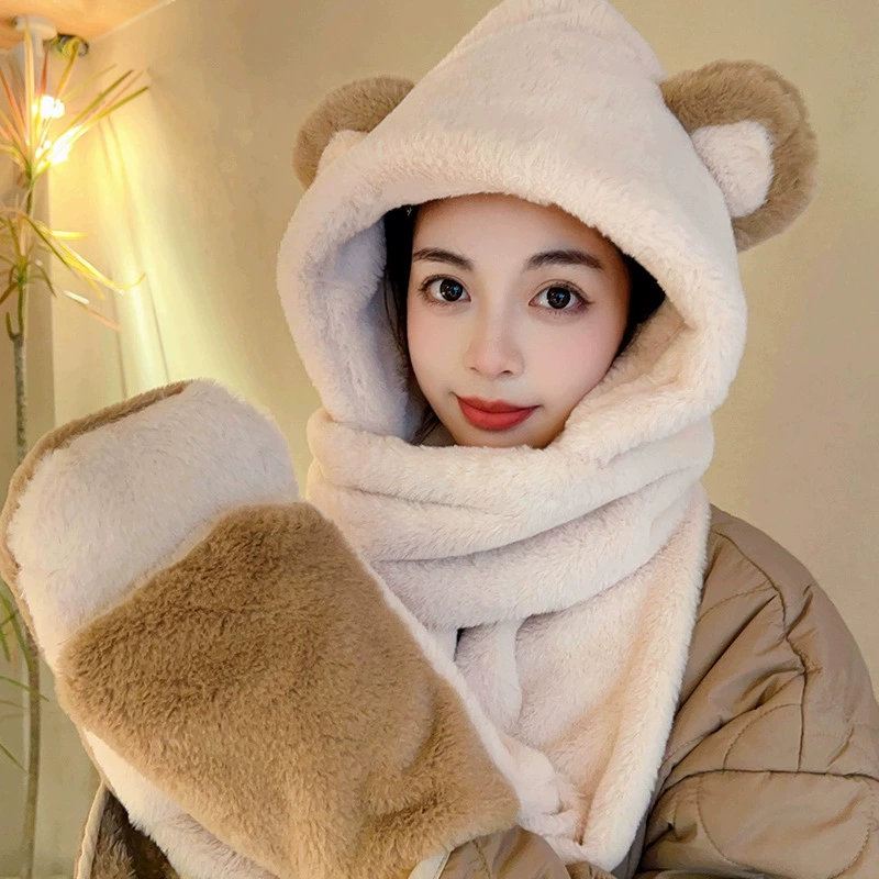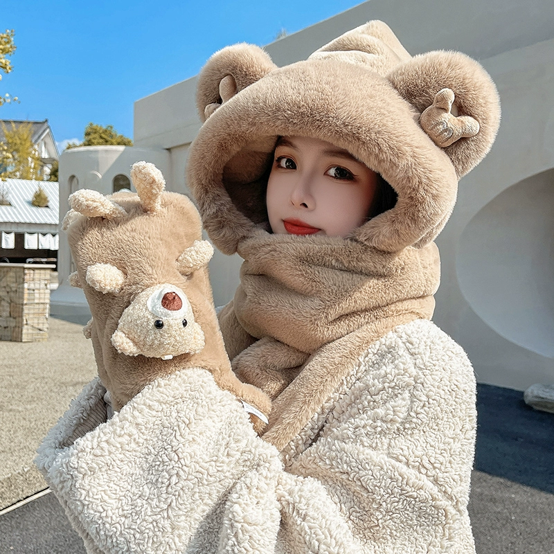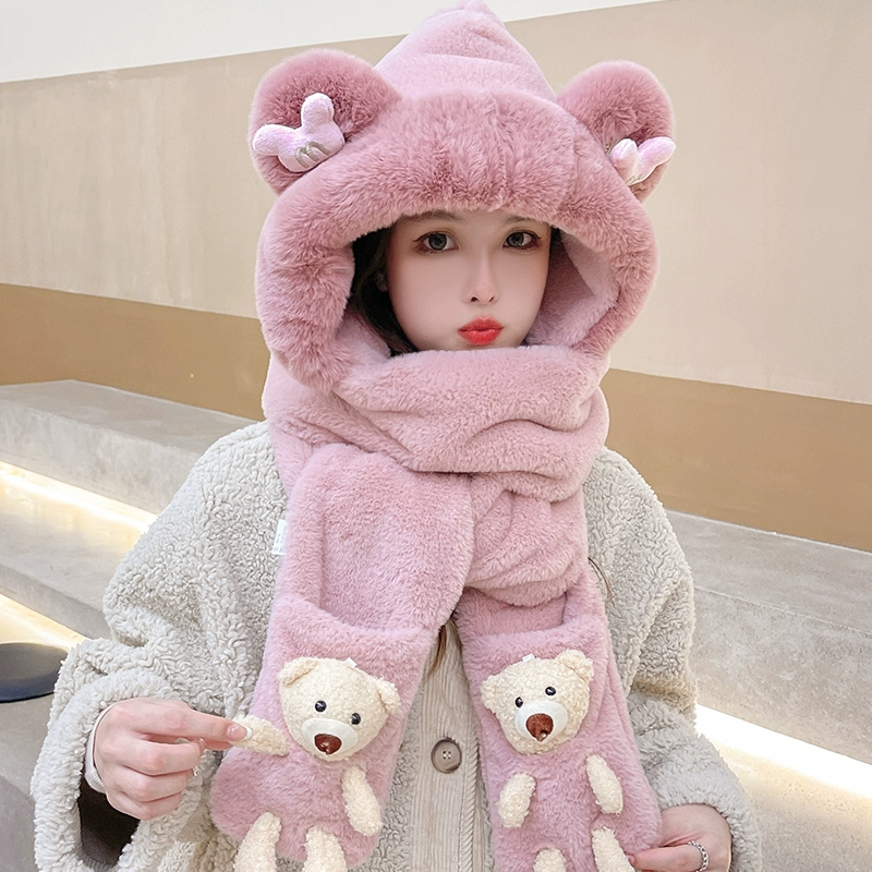 | nameOriginal | Bear Hat Scarf All-in-One Women's 2024 Autumn and Winter Cycling Thickened Plush Warm and Cute Windproof and Coldproof Mask |