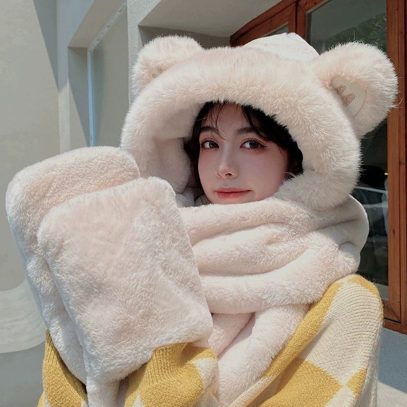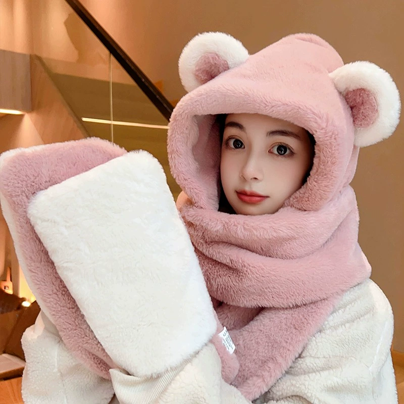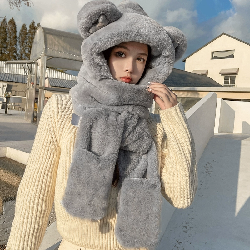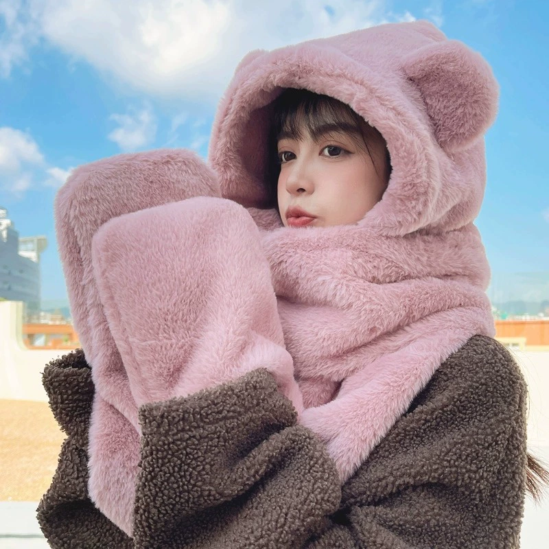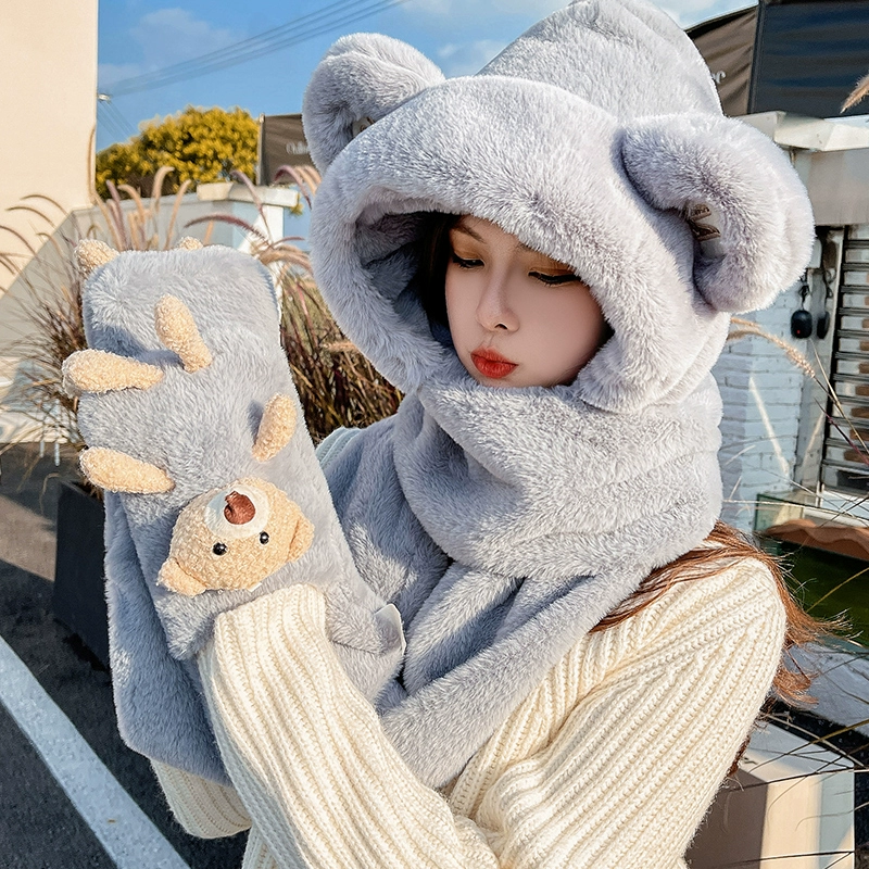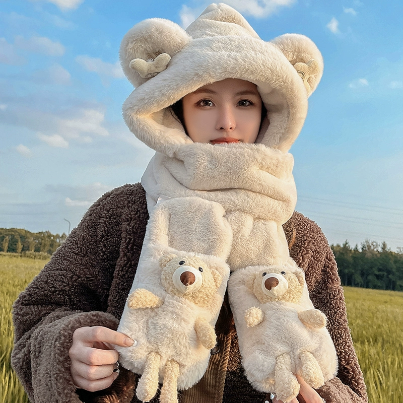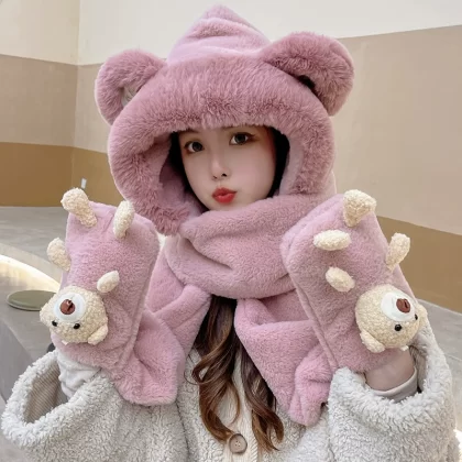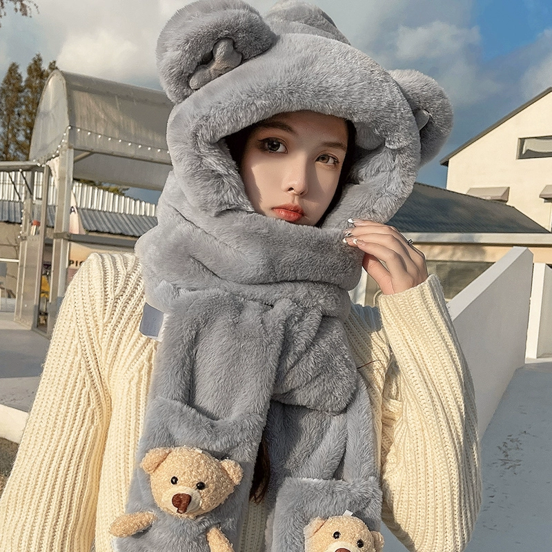| nameOriginal | Bear Hat Scarf All-in-One Women's 2024 Autumn and Winter Cycling Thickened Plush Warm and Cute Windproof and Coldproof Mask |