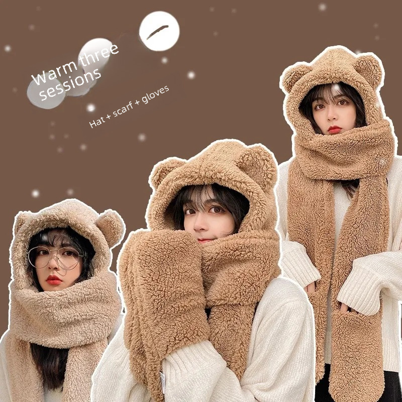 | nameOriginal | Bear Hat Scarf All-in-One Women's Winter Jinzhini Jennie Same Style Cute Thickened Warm Plush Three-Piece Set |