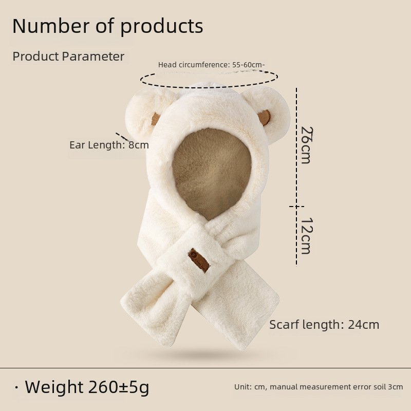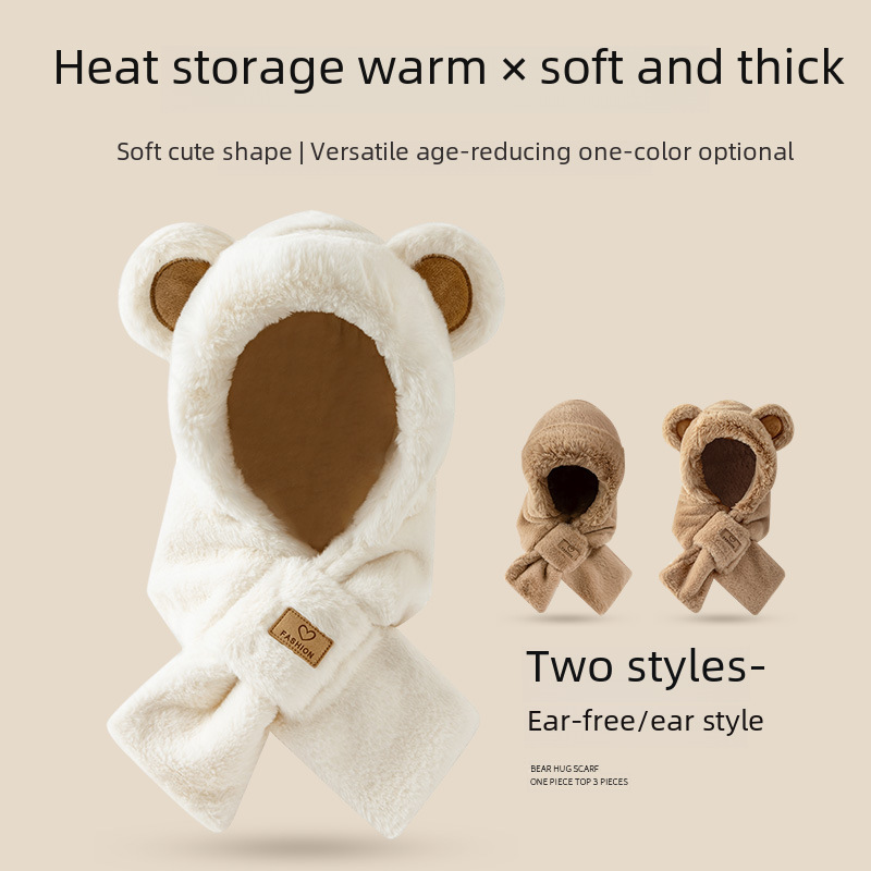 | nameOriginal | Bear hat scarf cute fashion Korean style plush hat female winter cross anti-rabbit fur hat scarf integrated |
