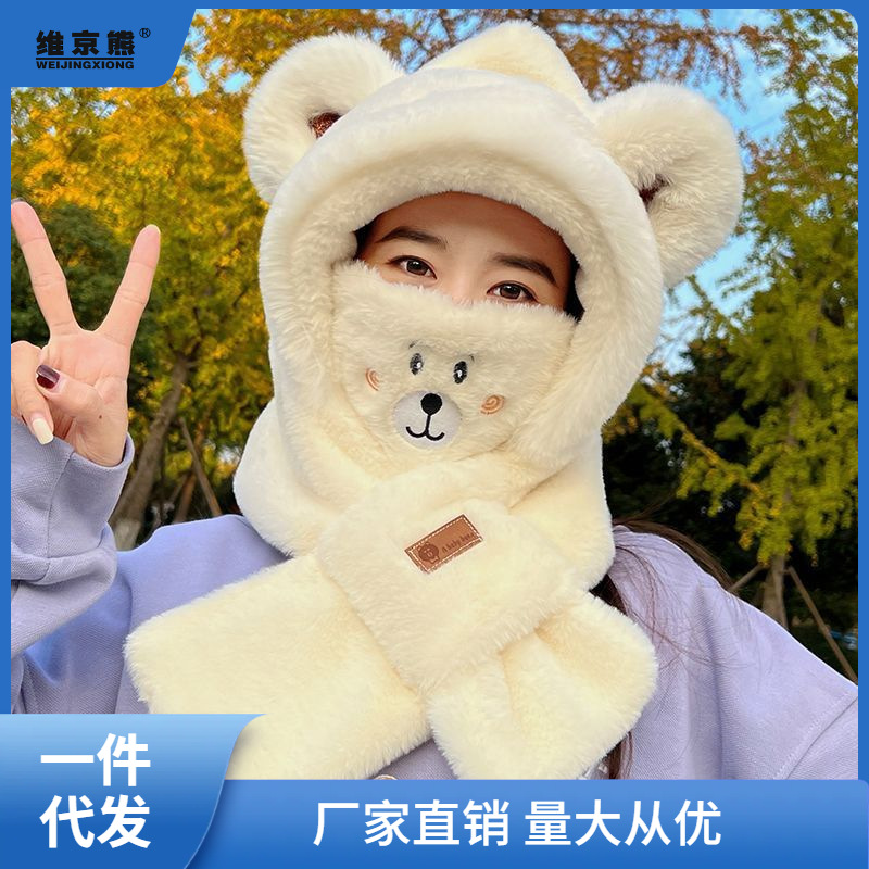 | nameOriginal | Bear hat women's winter warm scarf one-piece pullover hat cycling cold-proof ear protection cute plush scarf |
