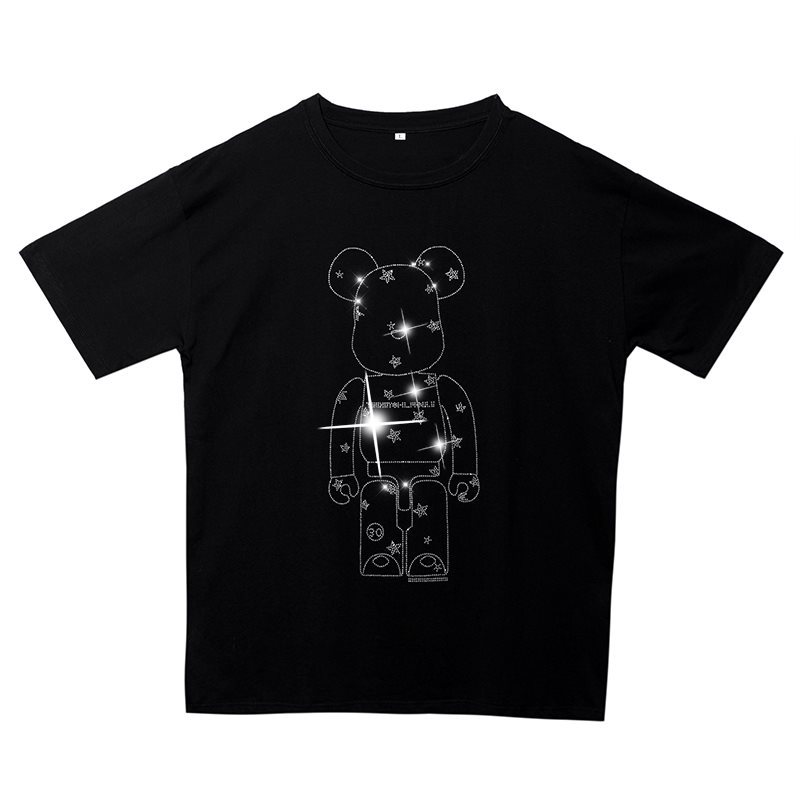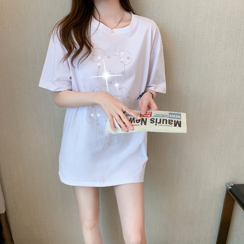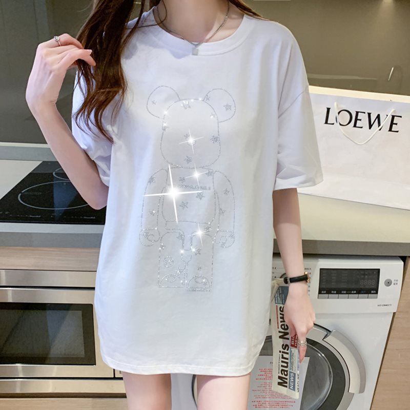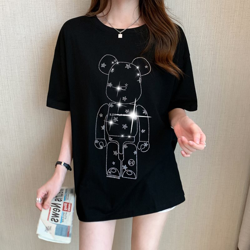 | nameOriginal | Bear Rhinestone Black Short-sleeved T-shirt Women's Summer Loose plus size Mid-length Cotton Ins Trendy Hong Kong Style Butt-covering Top |