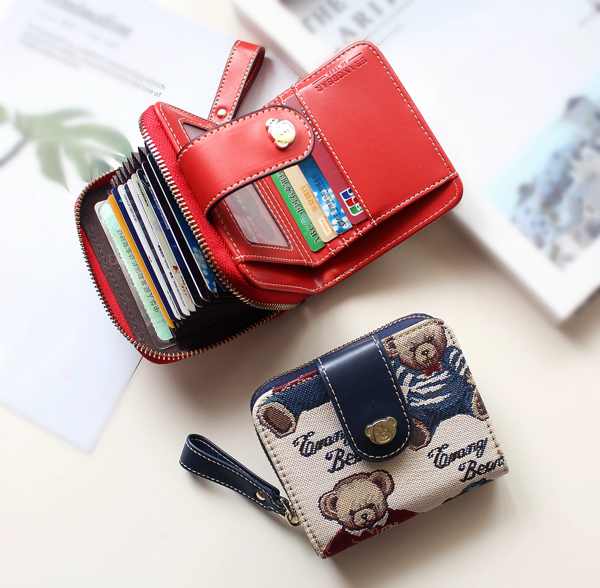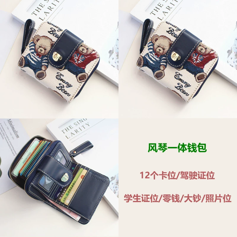 Bear Wallet Female Short Multi -in -one Multifunctional Multifunctional Large -capacity Card Bags Exquisite High -end Folding Money Piping Drive License