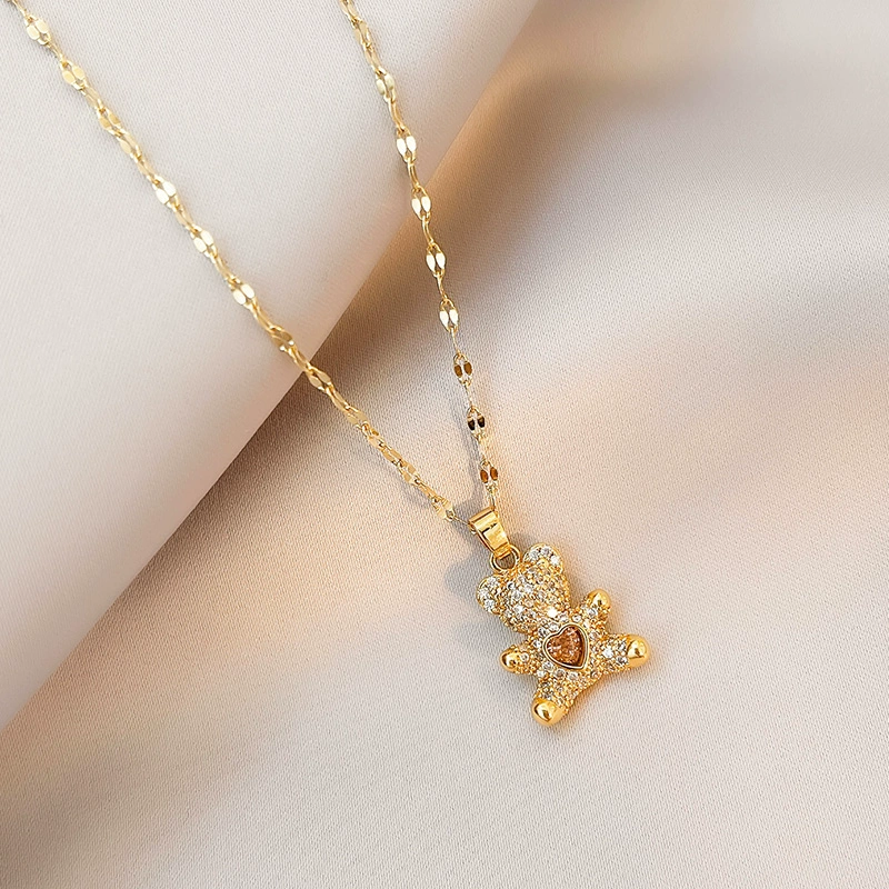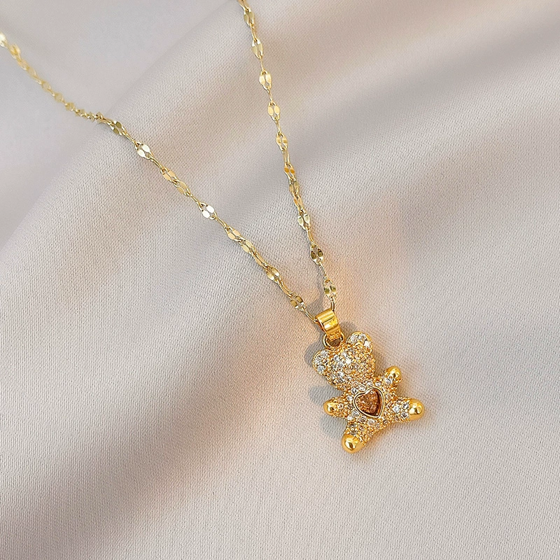 | nameOriginal | Beating Heart Bear Necklace Women's Summer Niche Design Lip Chain Clavicle Chain Cute Student High-end Accessories |