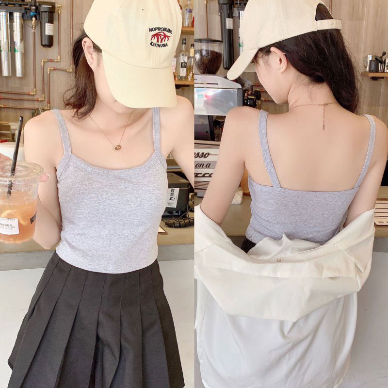 Beautiful Back Camisole Women’s Bracket Pad Inner Wearing Outer Wearing Korean Style Design Sense Niche Solid Color Base Top Women