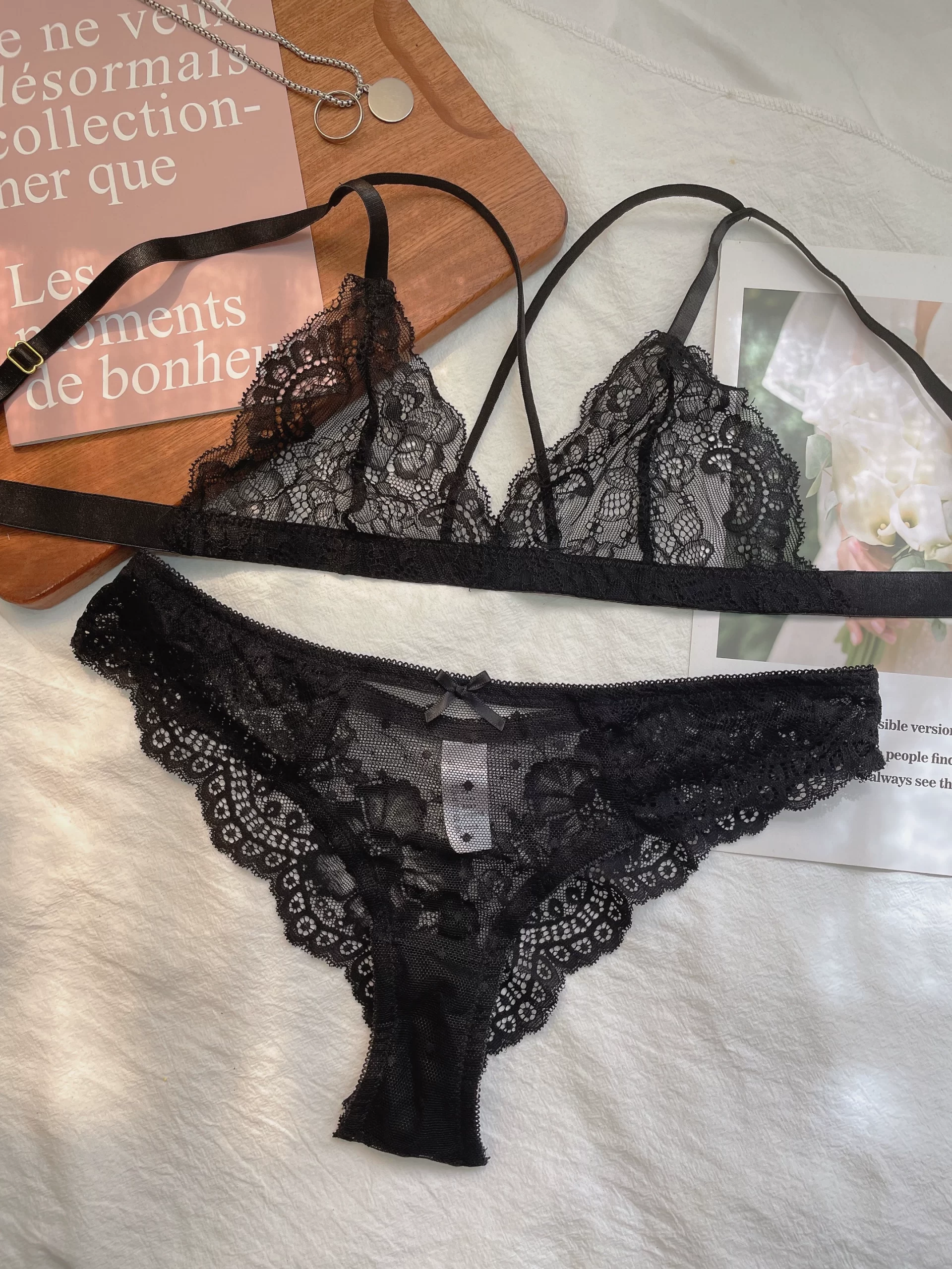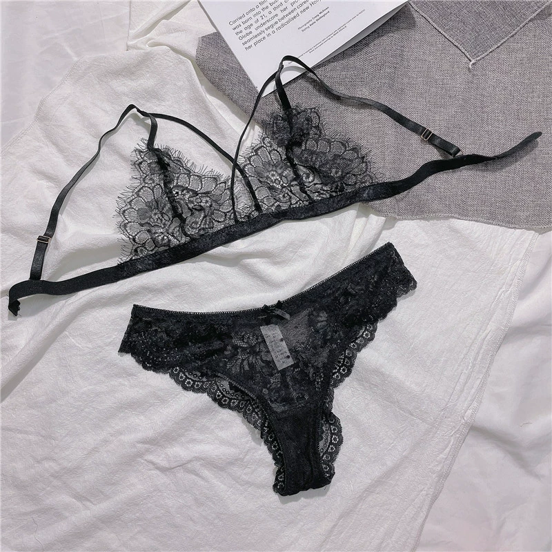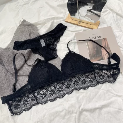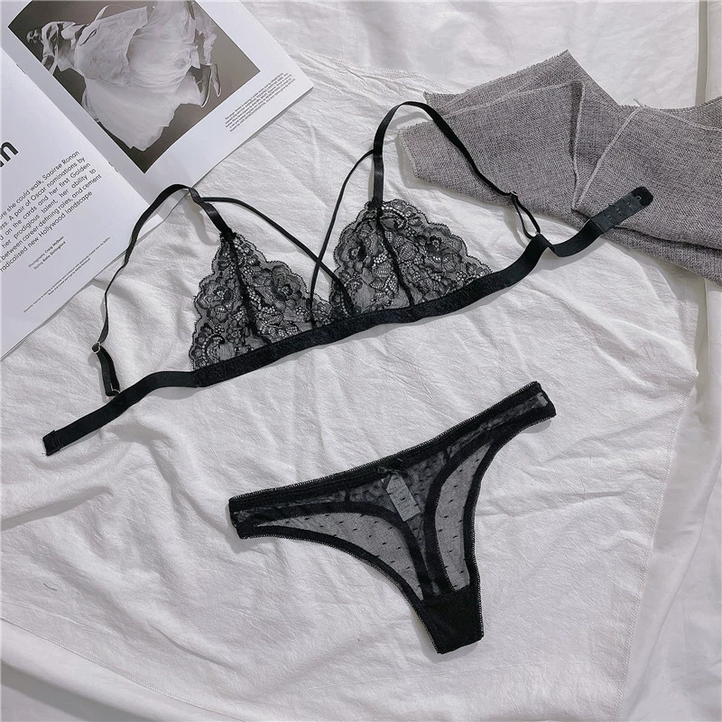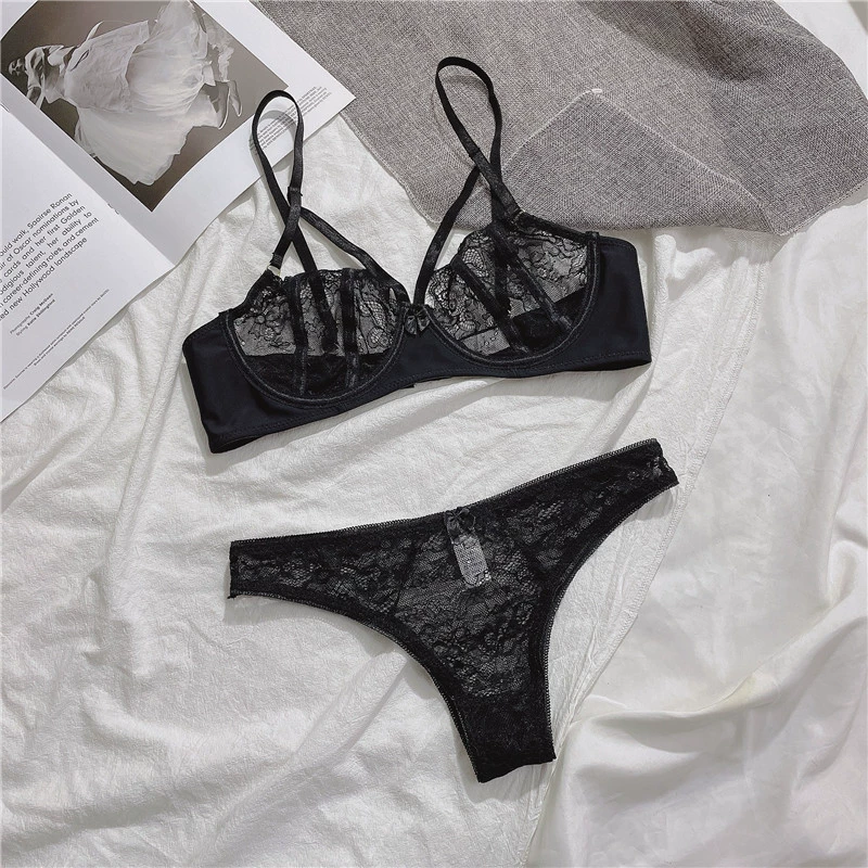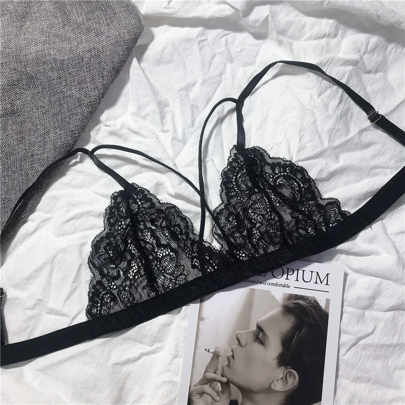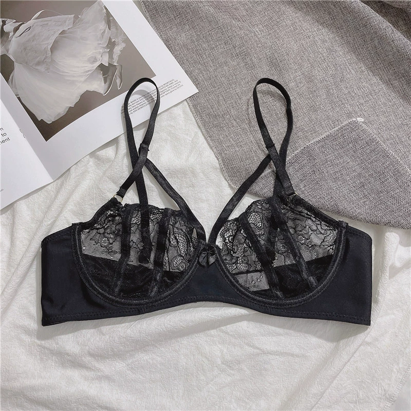 Sexy lace underwear Female Perspective Small Breast Pores, Breaky Back Anti -Betting Pure Pure Transparent Bra, Girl Thin
