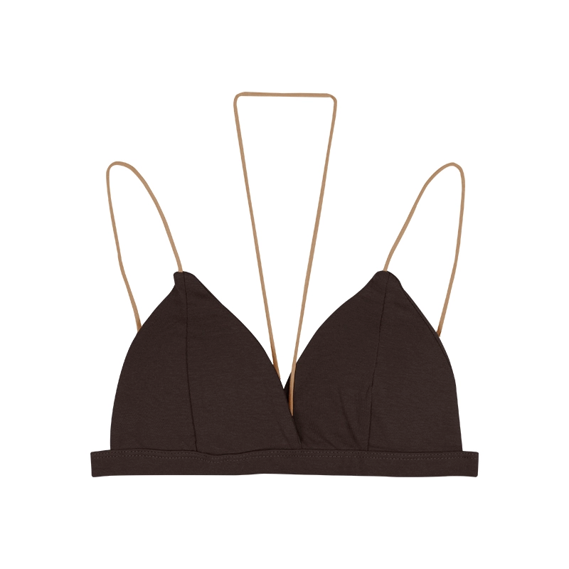 Beautiful back sexy triangle cup contrasting color push-up halter neck strap