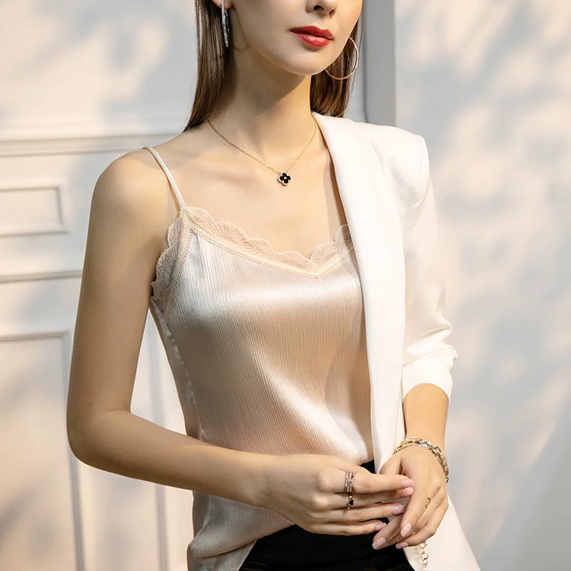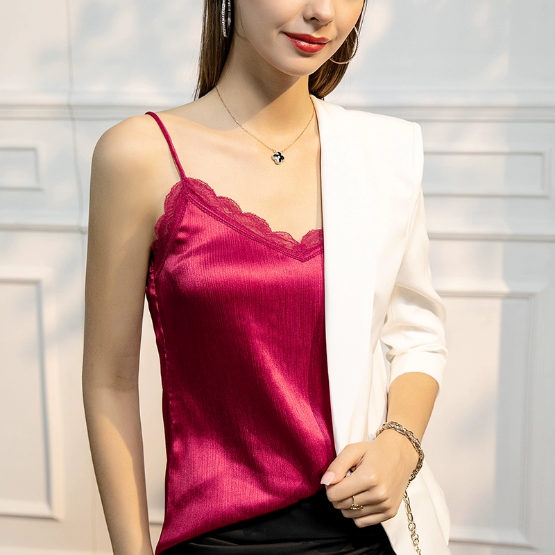 Beautiful back suit satin sexy spring and autumn camisole lace