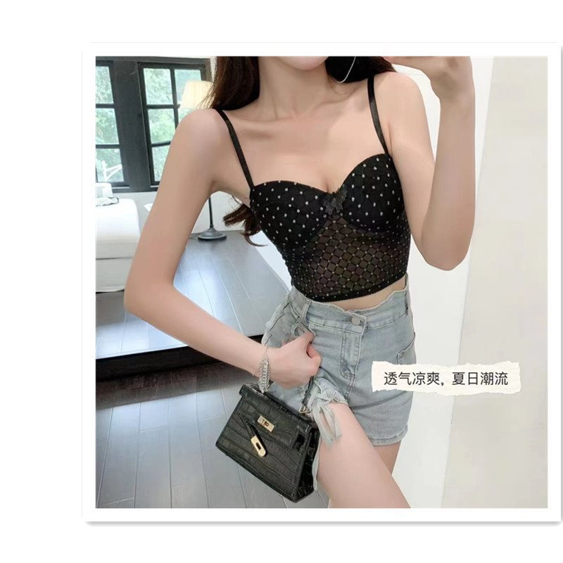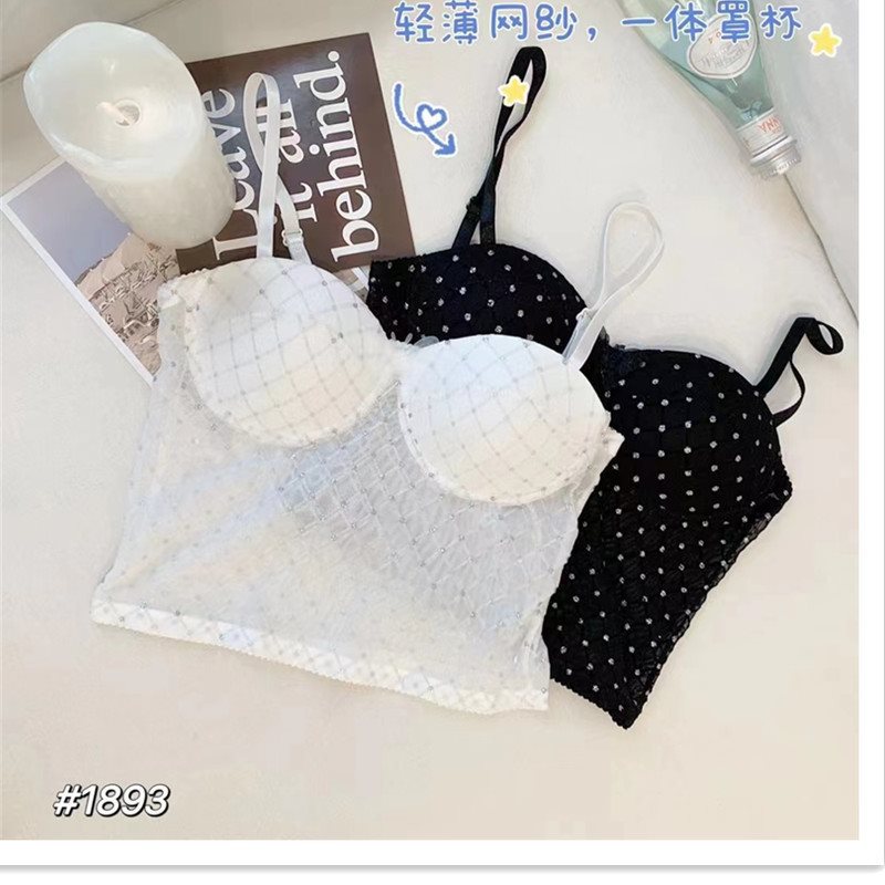 Beautiful back underwear women’s long version mesh sparkling fixed cup strap tube top sexy inner base vest women’s wholesale